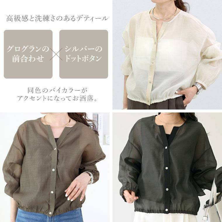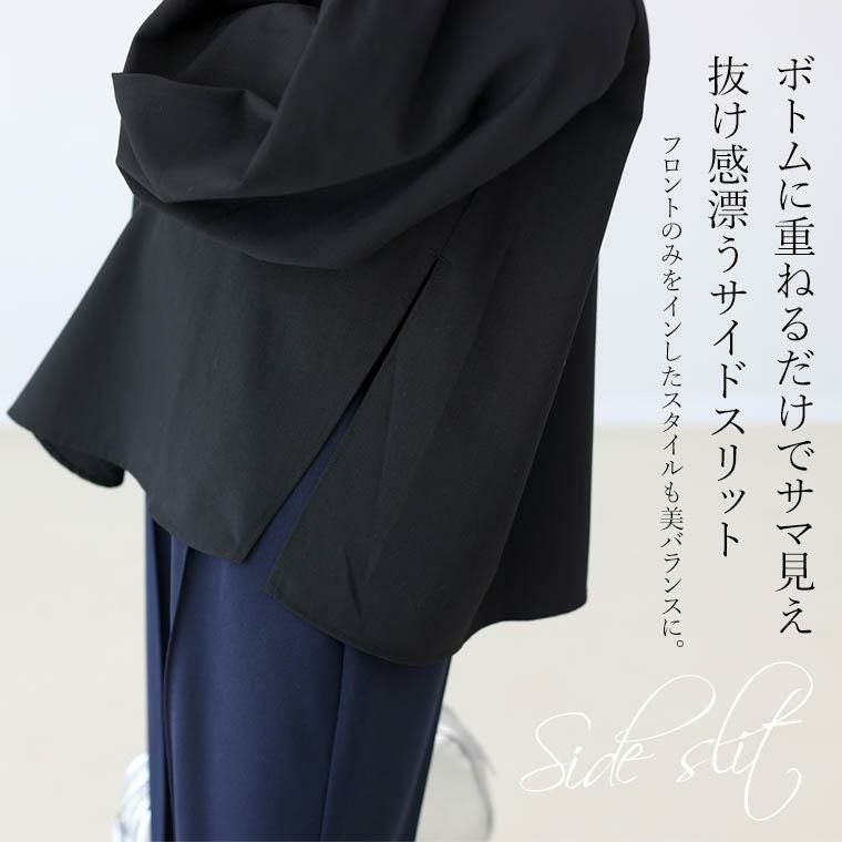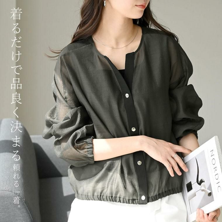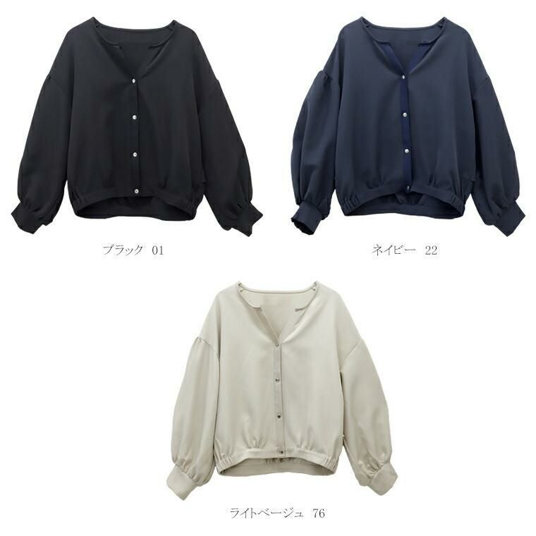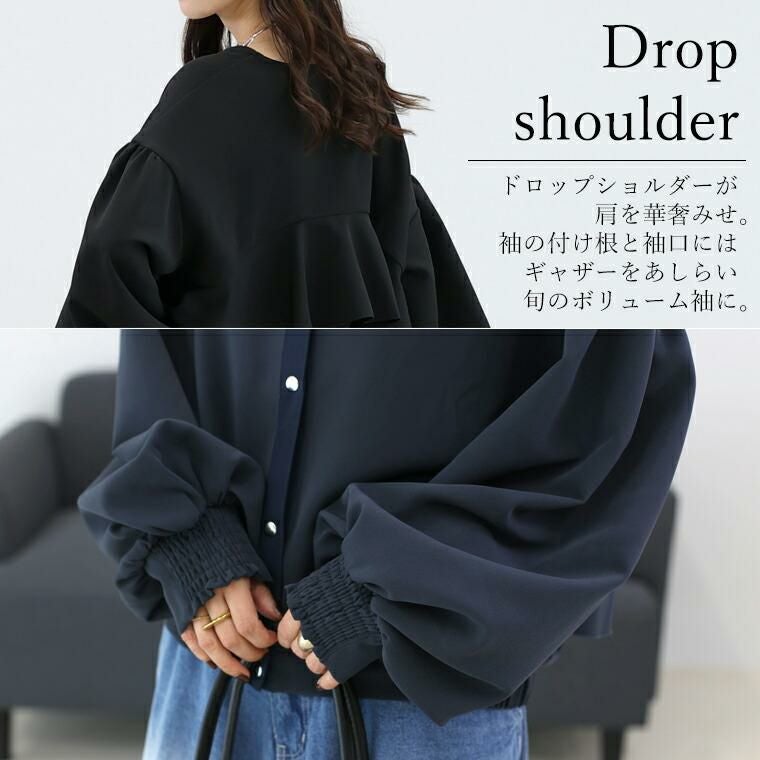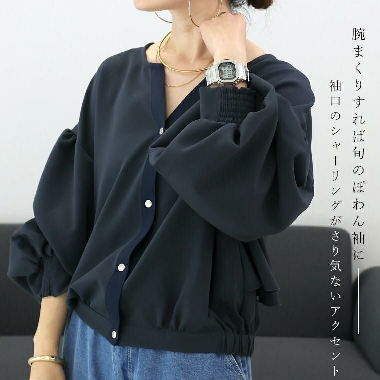 ボタンとシャーリング使いできちんと着映える2wayブラウス