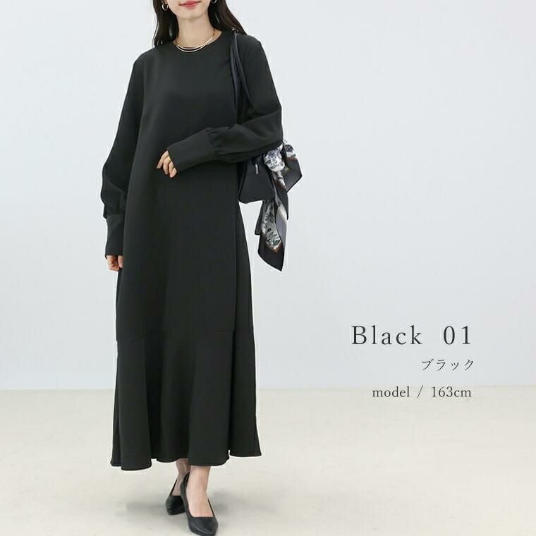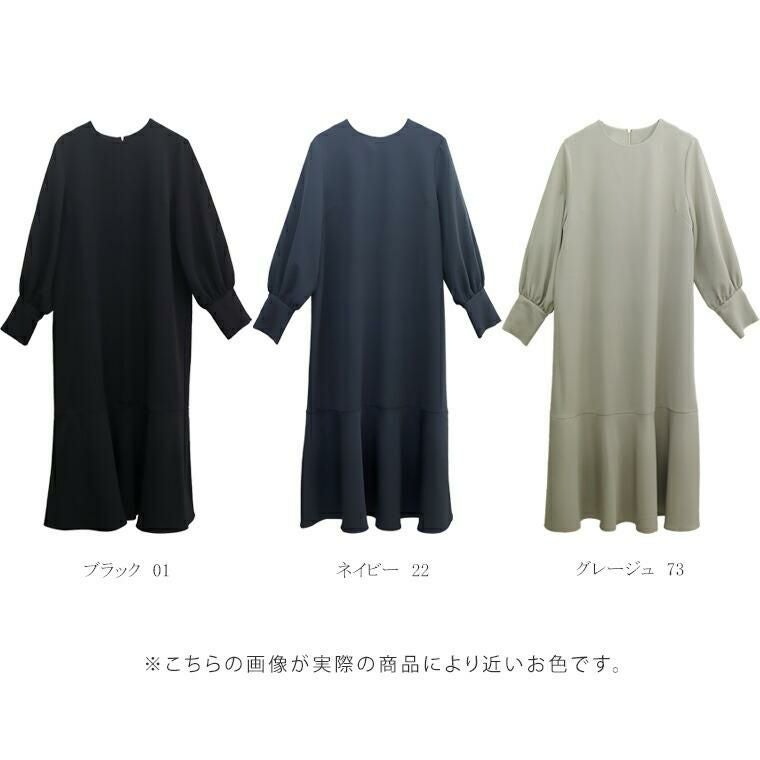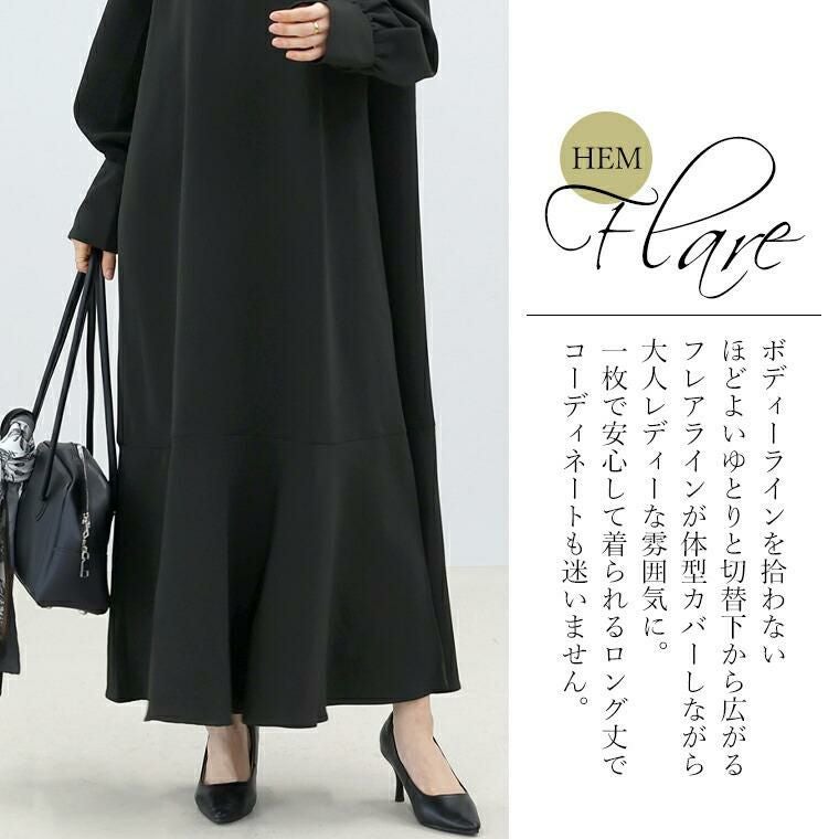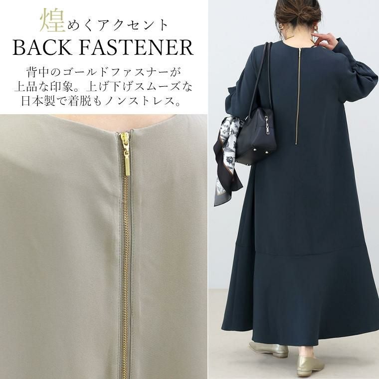 バックファスナー裾フレアロングワンピース 【メール便不可】