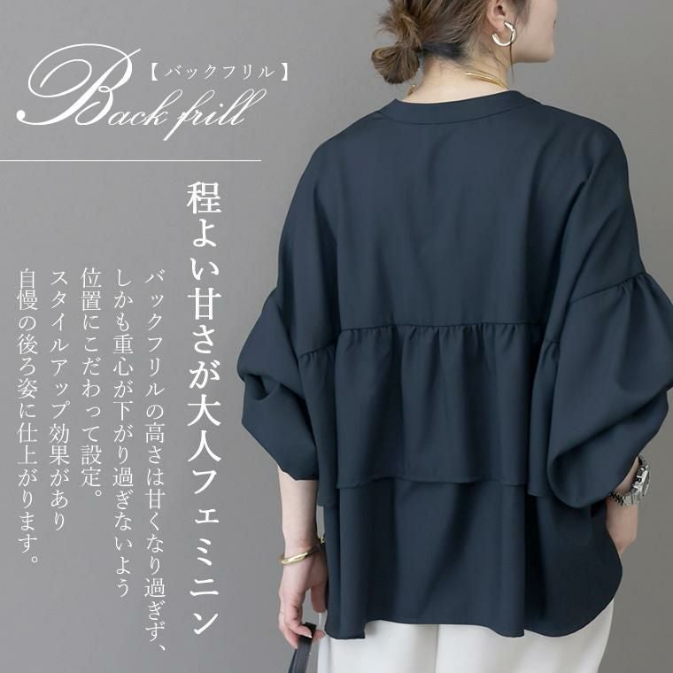 杢無地バックフリル前開きブラウス 【メール便可/ma3】