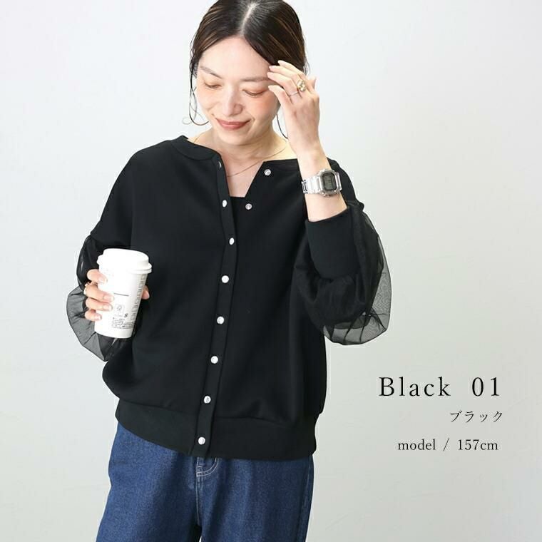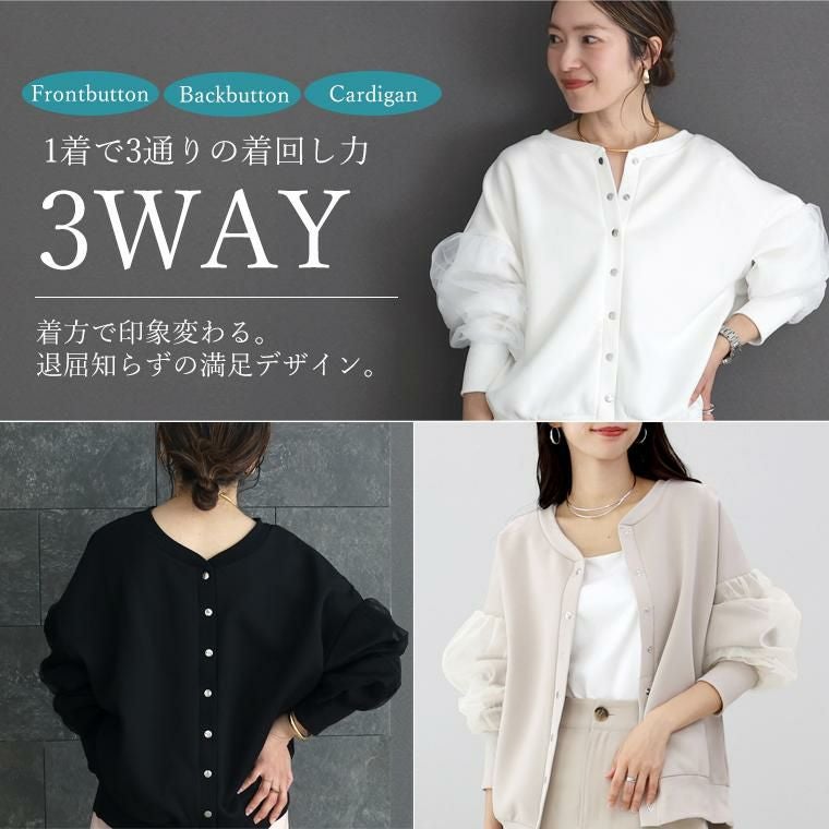 ダンボール袖チュール重ね2WAYカーディガン 【メール便不可】