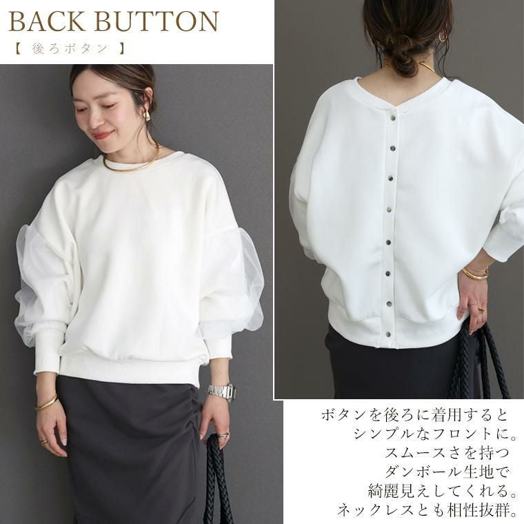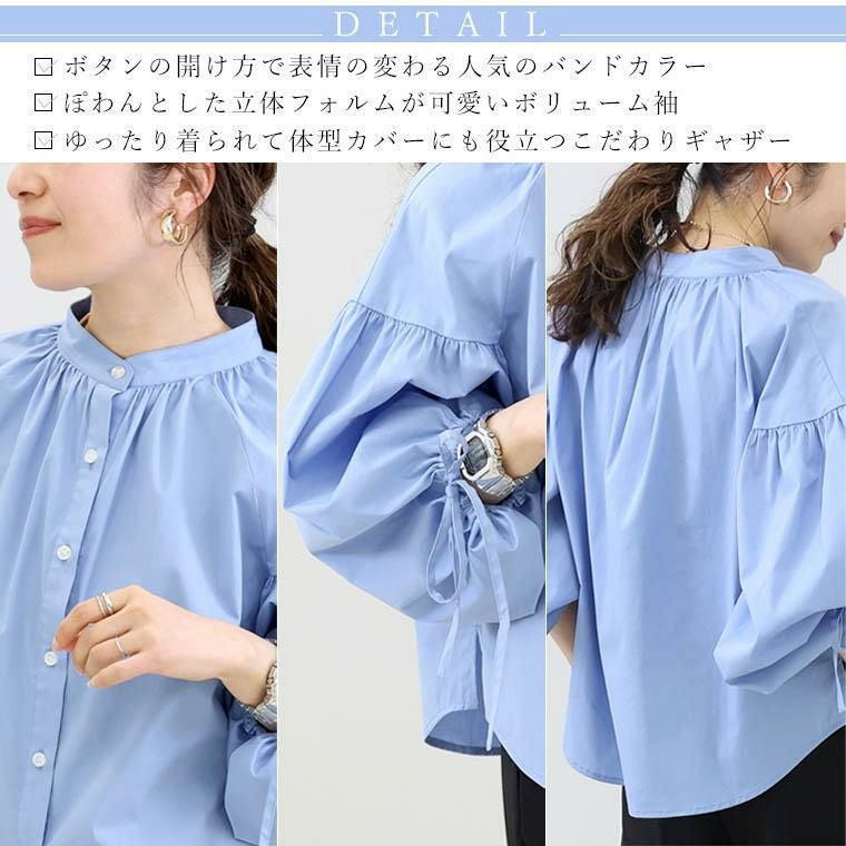 後ろボタン袖シャーリングブラウス 【メール便可/ma3】