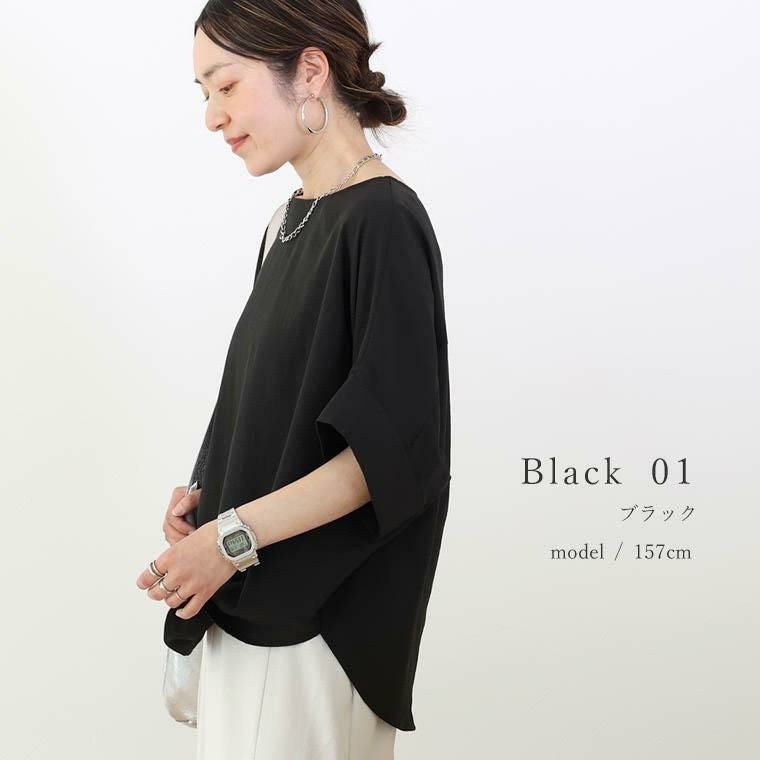 7分袖ポンチボートネックコクーンプルオーバー 【メール便可/ma3】