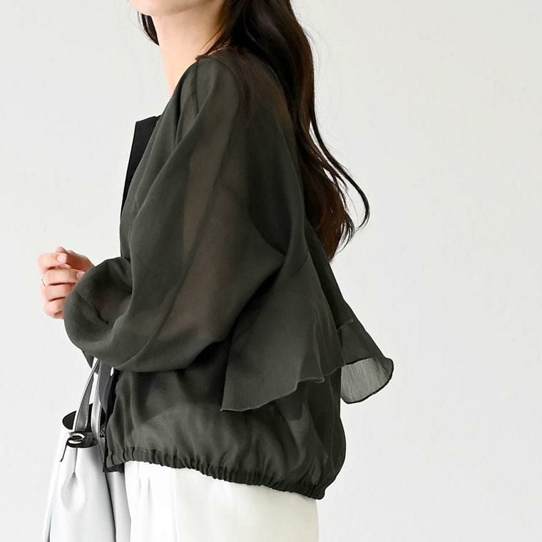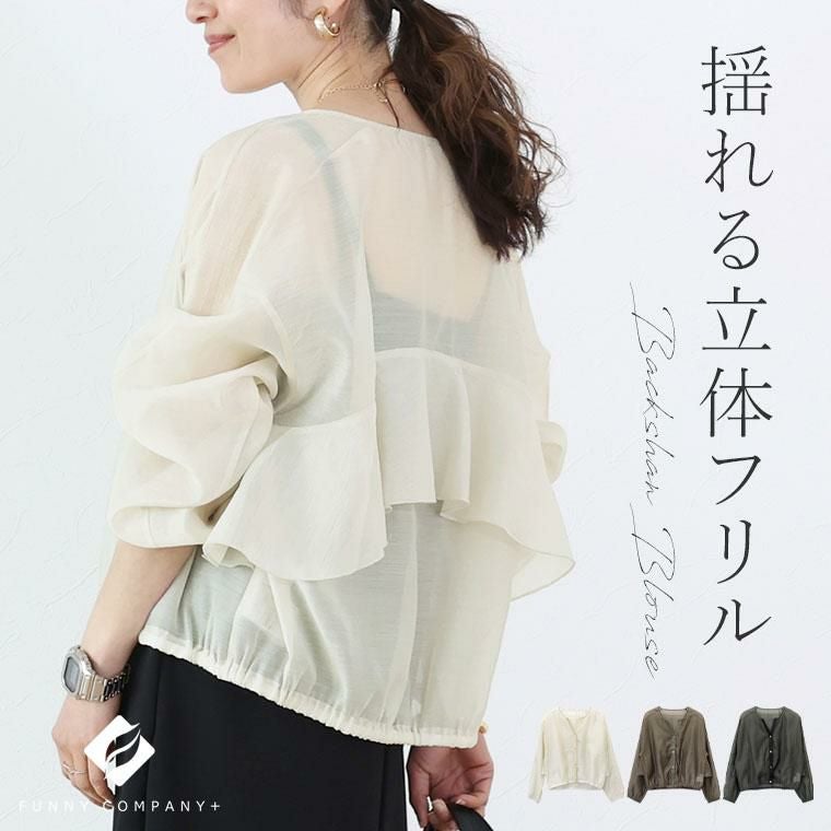 ドットボタンバックフリルシアーブラウス 【メール便可/ma1.5】