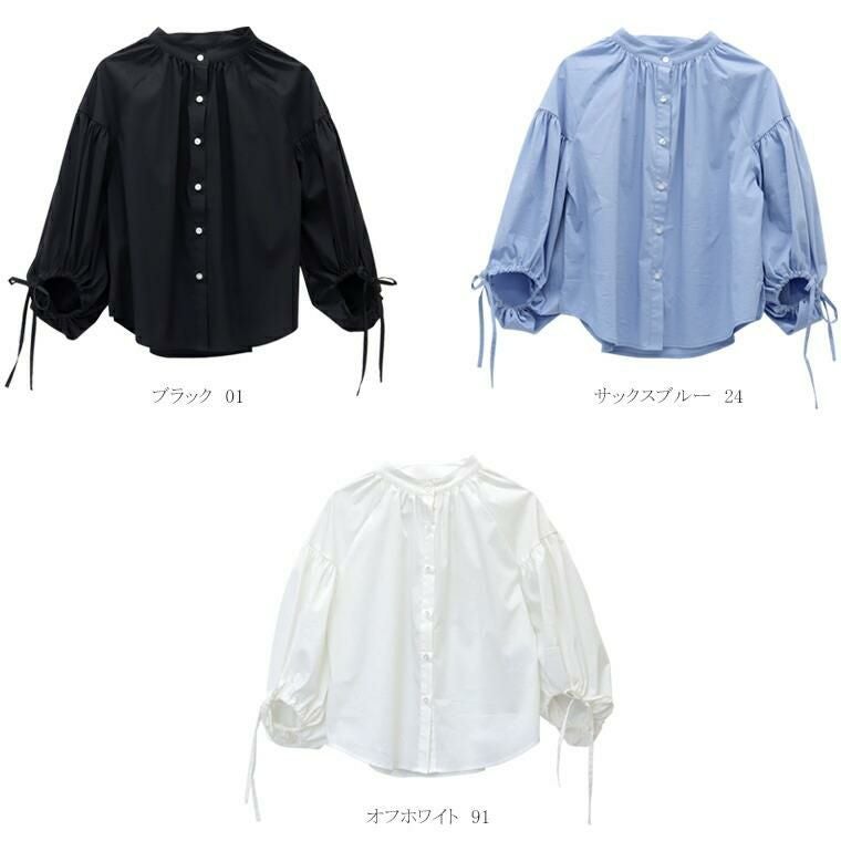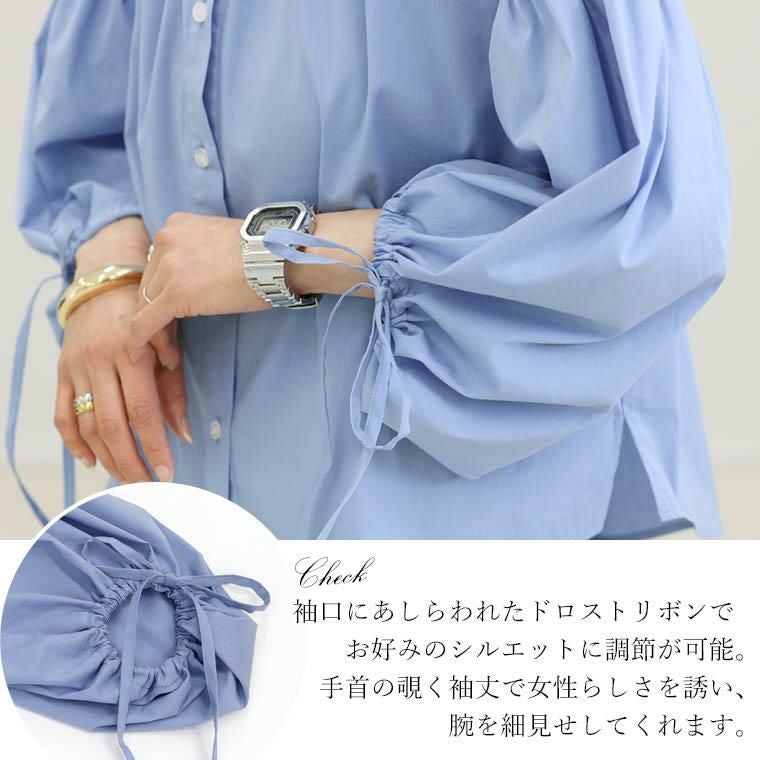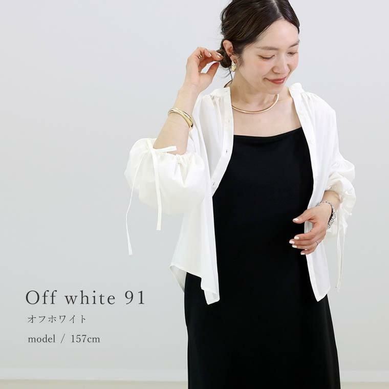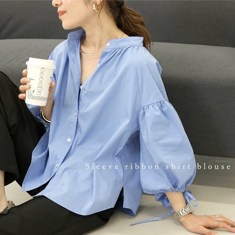 袖リボン前開きシャツブラウス 【メール便可/ma1.5】