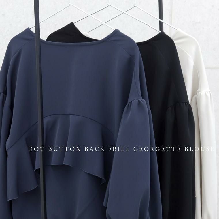 ドットボタンバックフリルジョーゼットブラウス 【メール便不可】