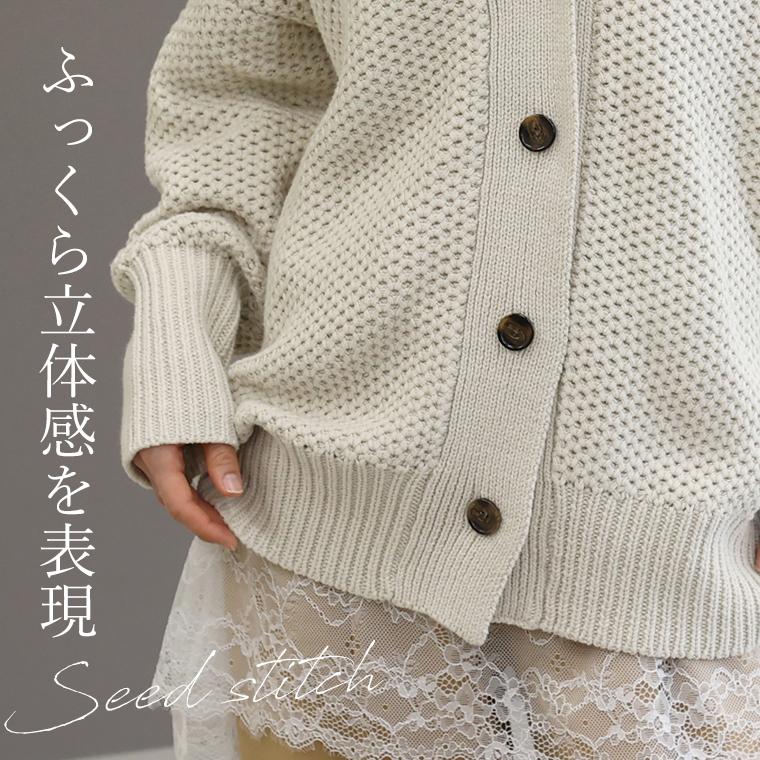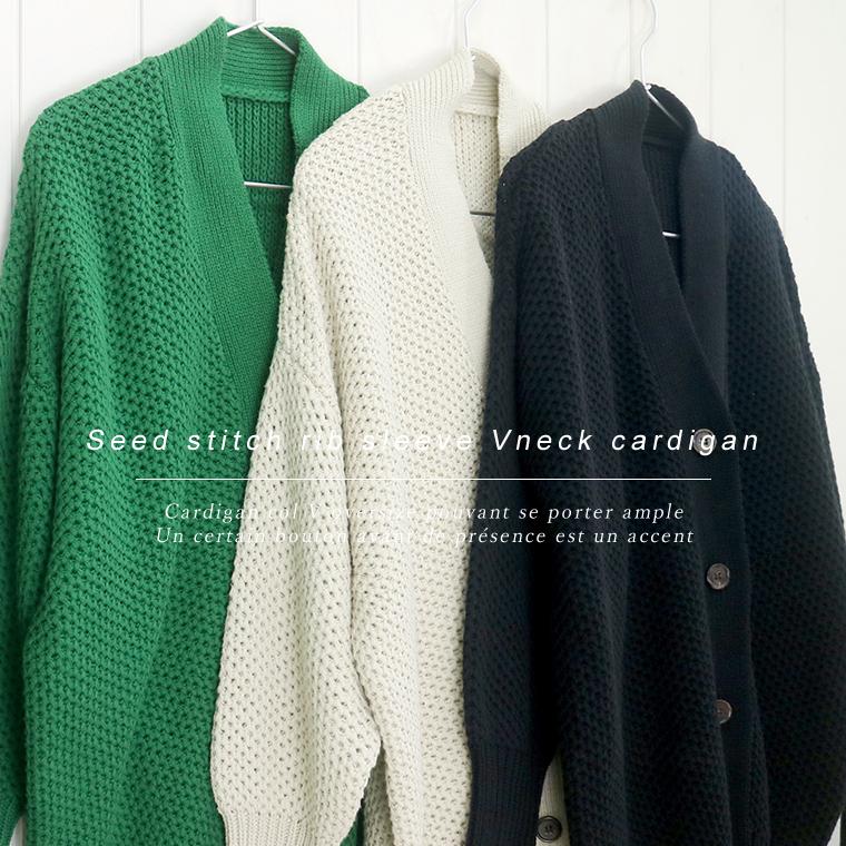 鹿の子編みリブ袖Vネックカーディガン 【メール便不可】