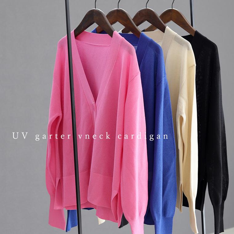 新作72H限定クーポン利用で10%OFF★4月1日10時発売開始★UV加工ガーター編みVネック長袖カーディガン 【メール便可/ma3】
