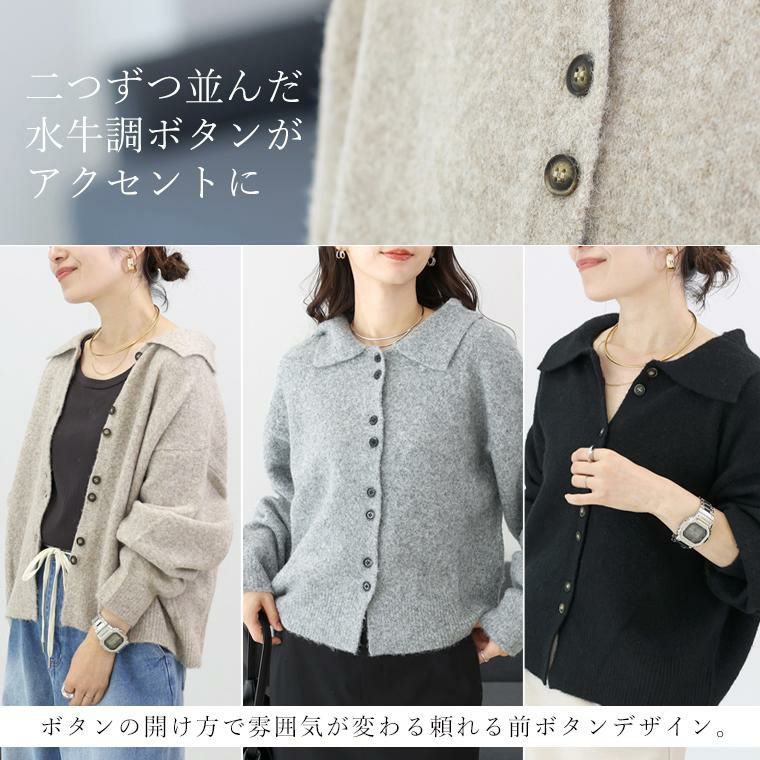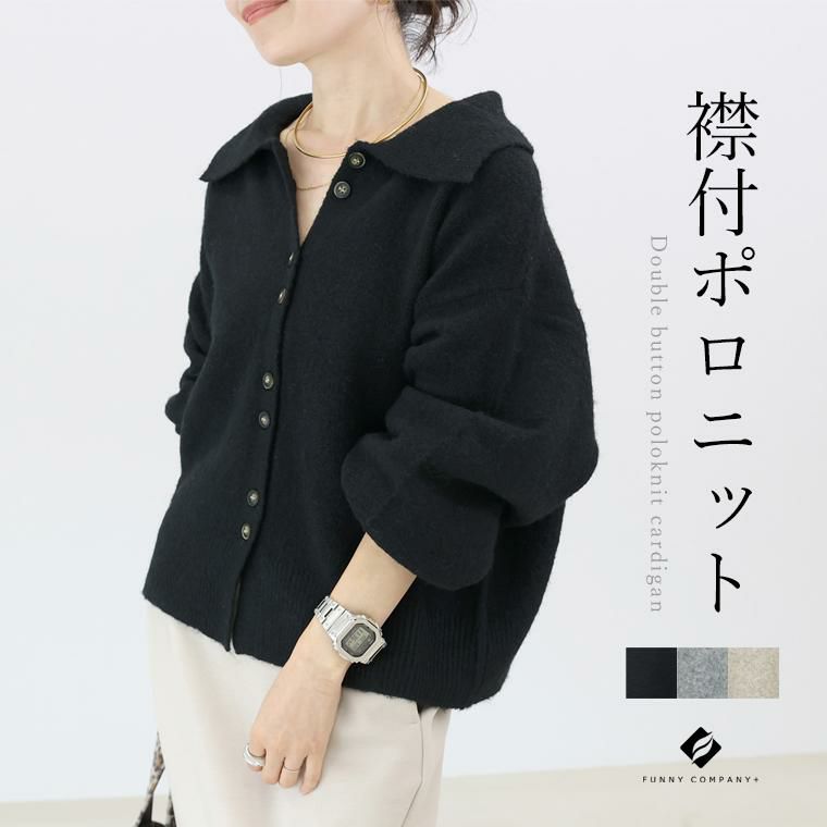 ニット カーディガン 羽織り ポロニット トップス ミドルゲージ 7G 長袖 ドロップショルダー ワイド 華奢 着痩せ 透けない 伸縮 着やすい 襟付 襟 デコルテ シンプル キレイ見え きれいめ キレイめ 綺麗め 上品 楽ちん イージー イージー素材 ルーズ ゆるめ PO 起毛 天竺編み 弾力 ゆったり ゆるめ ダブルボタン 配色 ボタン 水牛調 リラックス おしゃれ お洒落 体型カモフラージュ 大人め ブラック クロ 黒 黒色 杢グレー 灰色 グレー 杢ベージュ ベージュ メランジ カラバリ豊富 大きめ 大きい ワンマイルウエア ワンマイルウェア レディースファッション 無地 ラクチン らくちん 楽ちん 動きやすい プラスサイズ 着痩せ 華奢見え 脚長 脚長効果 ゆったりサイズ ゆる すっきり カバー 体型カバー きちんと シンプル カジュアル ナチュラル ベーシック オフィス オフィスカジュアル テレワーク 会議 食事会 ランチ 女友達 参観日 二次会 飲み会 上品 知的 女性らしい 女らしい 着映え オンライン飲み会 着回し 大人 大人カジュアル オトナ 女性 綺麗 きれい キレイ キレイめ 高見え 上質 大きいサイズ 細見え 女性服 アースカラー フリーサイズ 楽 ノンストレス 動きやすい ゆったり 高級感 母の日 プレゼント ギフト 贈り物 S M L LL 2L XL 20代 30代 40代 50代 おしゃれ パ―ト バイト 仕事 仕事用 ユニフォーム 春夏 春 夏 秋冬 秋 冬 お洒落 オシャレ かわいい 可愛い カワイイ かっこいい カッコいい FUNNY COMPANY ファニーカンパニー ふぁにーかんぱにー ファニカン