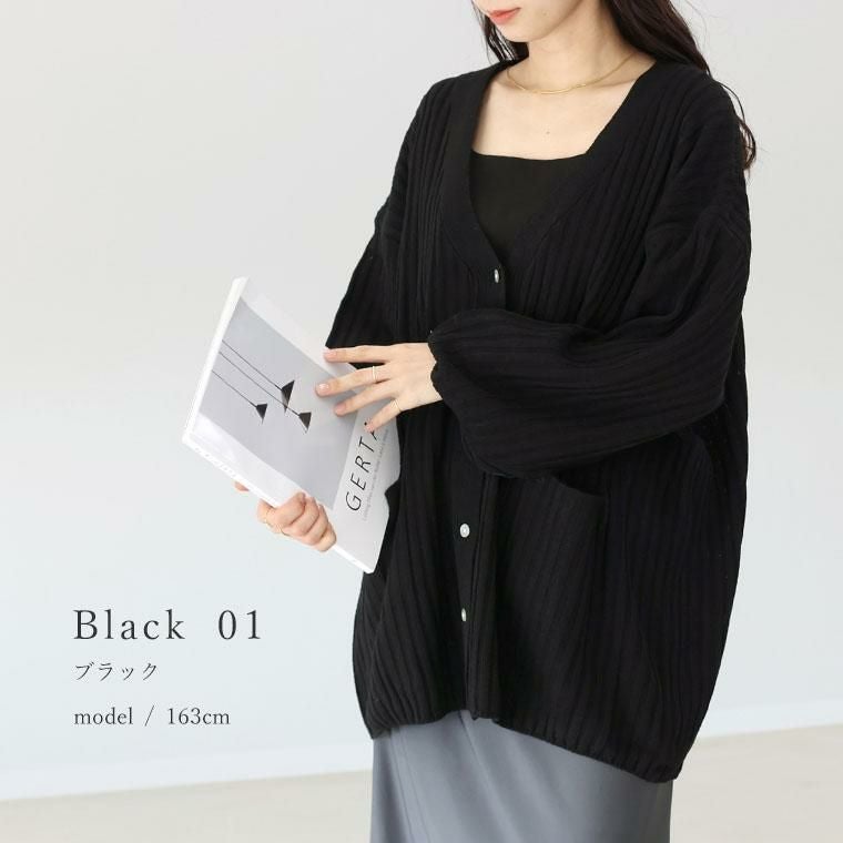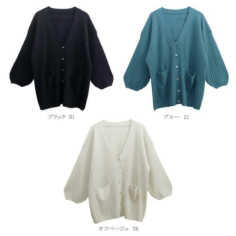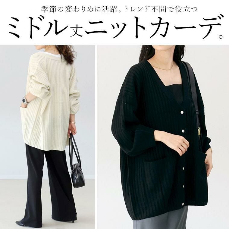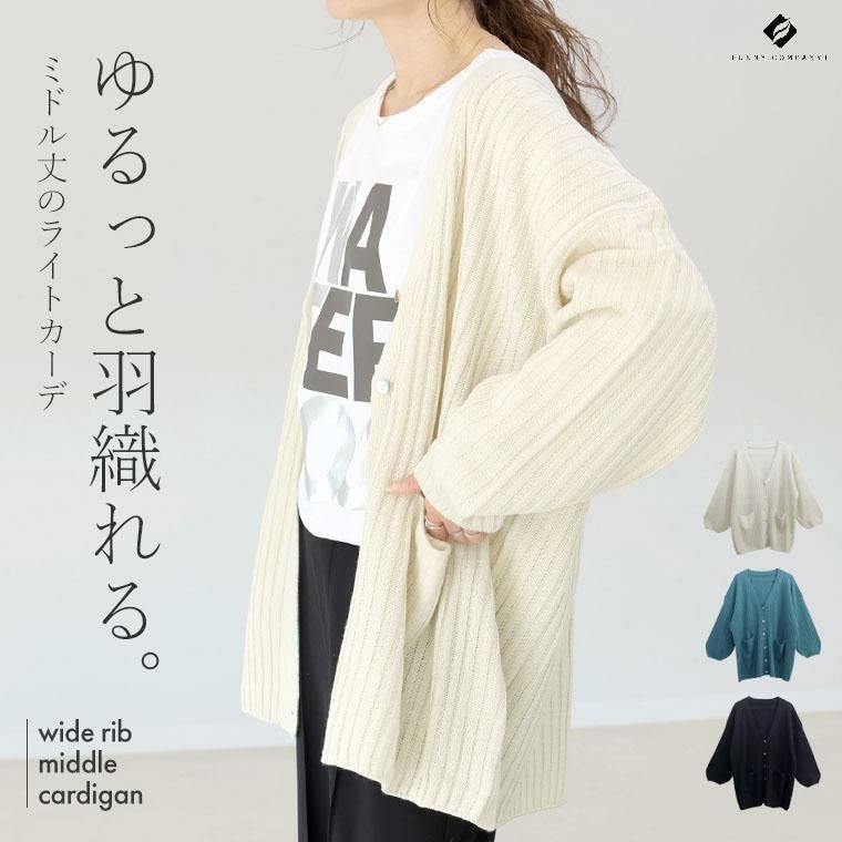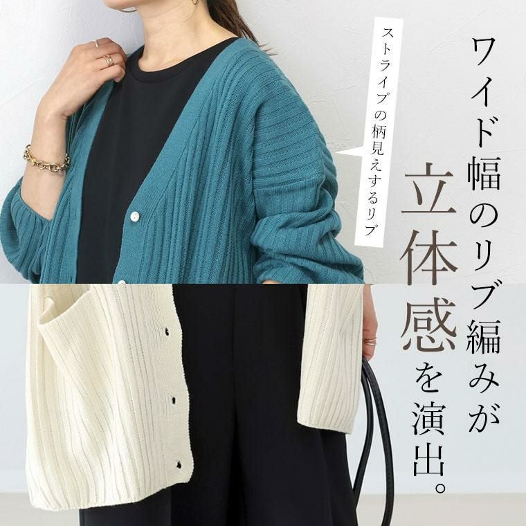 ワイドリブVネックミドルカーディガン 【メール便不可】