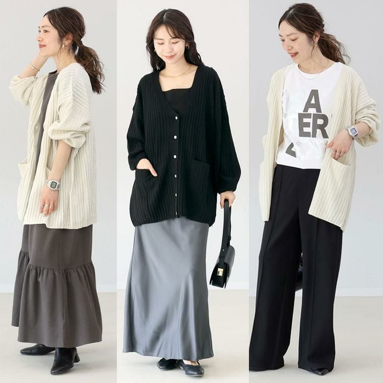 トレンド不問で着まわせる 幅広リブのニットカーディガン