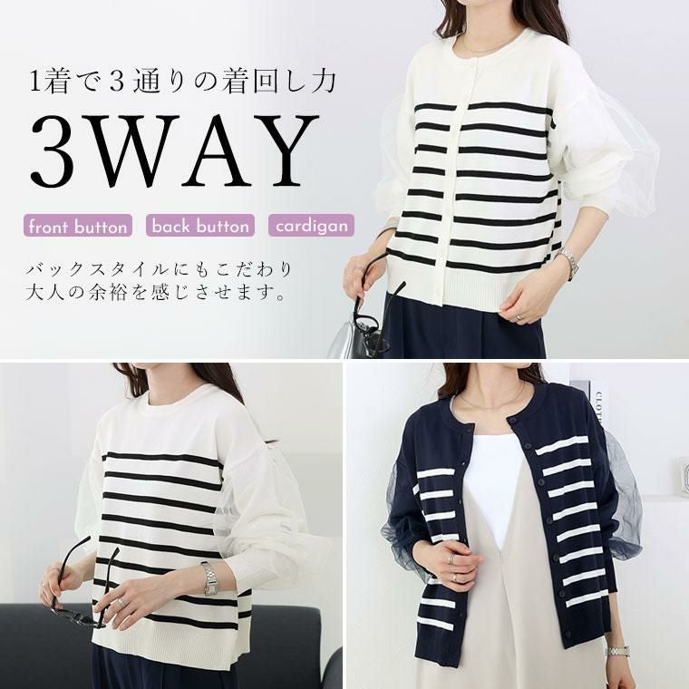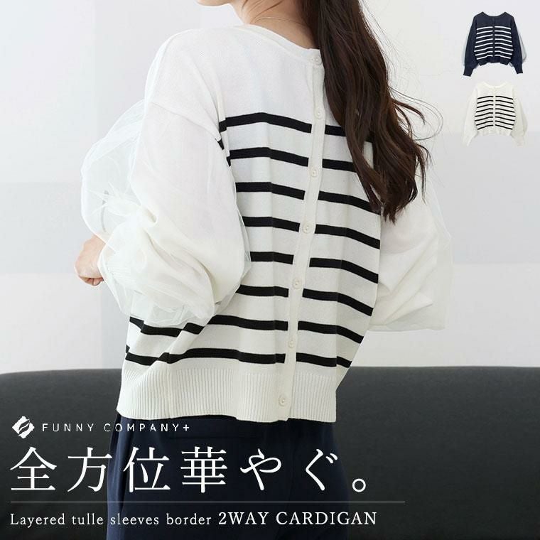 トップス カーディガン 2WAY 3WAY チュール ボーダー 後ろボタン きれいめ キレイめ 綺麗め 上品 おしゃれ お洒落 大人め ネイビー 紺 オフホワイト 白 カラバリ豊富 大きめ 大きい ワンマイルウエア ワンマイルウェア レディースファッション 無地 ラクチン らくちん 楽ちん 動きやすい プラスサイズ 着痩せ 華奢見え 脚長 脚長効果 ゆったりサイズ ゆる すっきり カバー 体型カバー きちんと シンプル カジュアル ナチュラル ベーシック オフィス オフィスカジュアル テレワーク リモートワーク リモート 会議 食事会 ランチ 女友達 参観日 二次会 飲み会 上品 知的 女性らしい 女らしい 着映え オンライン飲み会 着回し 大人 大人カジュアル オトナ 女性 綺麗 きれい キレイ キレイめ 高見え 上質 上品 大きめ 大きい 大きいサイズ 体型カバー 華奢見え 着痩せ 細見え 着回し 大人 大人カジュアル オトナ 女性 綺麗 女性 女性服 アースカラー フリーサイズ レディースファッション ラクチン 楽 らくちん 楽ちん ノンストレス 動きやすい プラスサイズ 着回し プラスサイズ ゆったり ゆったりサイズ ゆる すっきり シンプル 無地 きれい キレイ きれいめ キレイめ 高見え 上質 高級感 母の日 プレゼント ギフト 贈り物 S M L LL 2L XL 20代 30代 40代 50代 おしゃれ パ―ト バイト 仕事 仕事用 ユニフォーム 春夏 春 夏 秋冬 秋 冬 お洒落 オシャレ かわいい 可愛い カワイイ かっこいい カッコいい FUNNY COMPANY ファニーカンパニー ふぁにーかんぱにー ファニカン