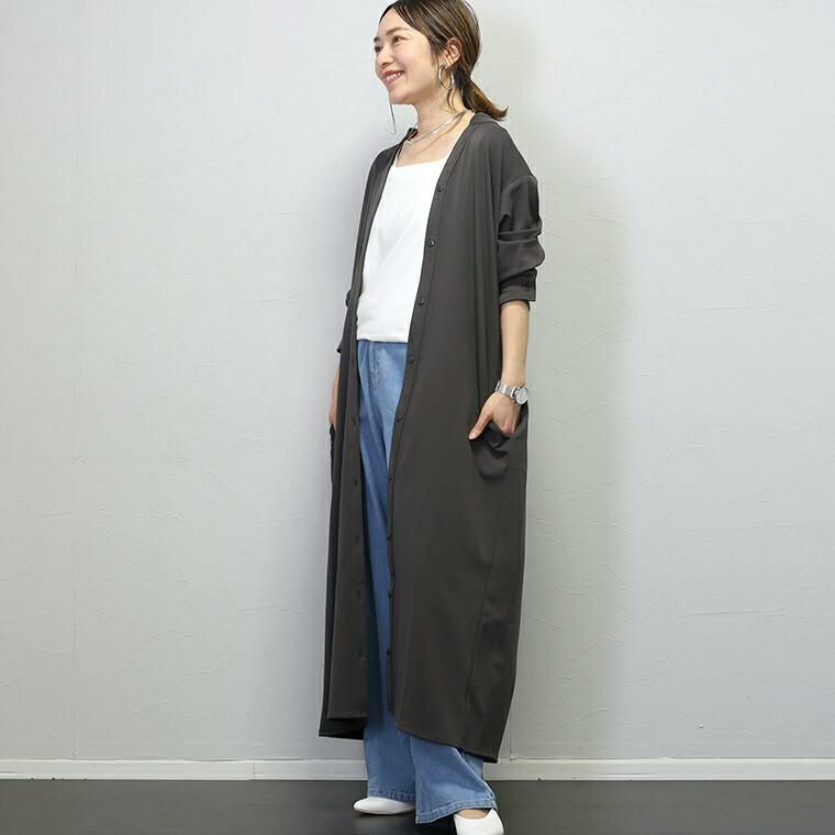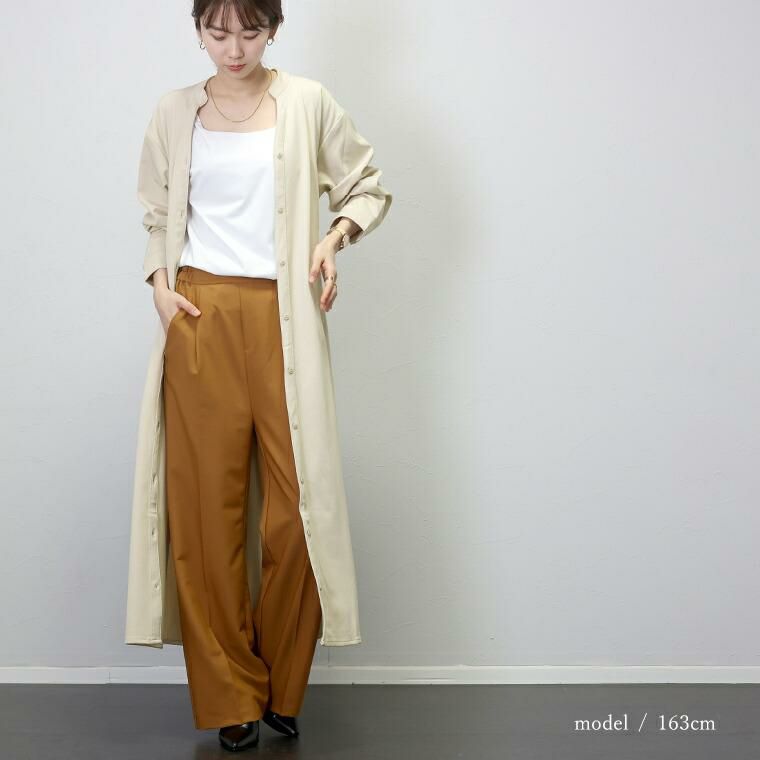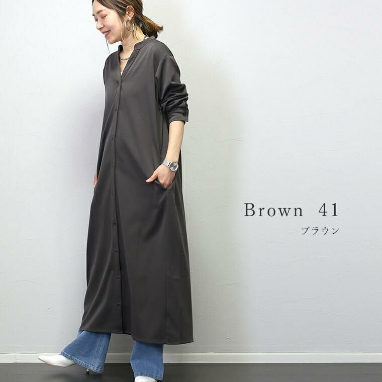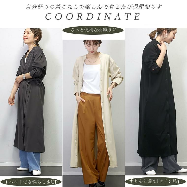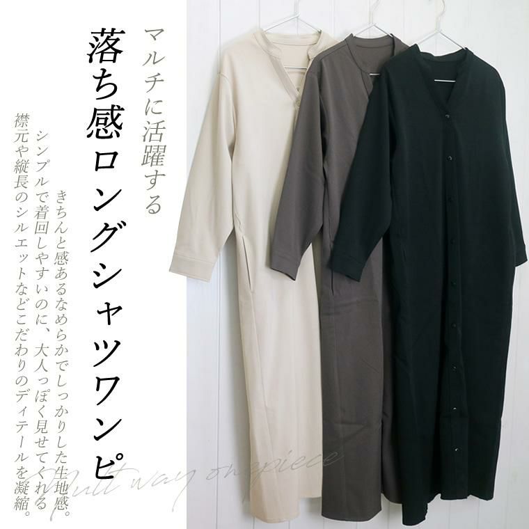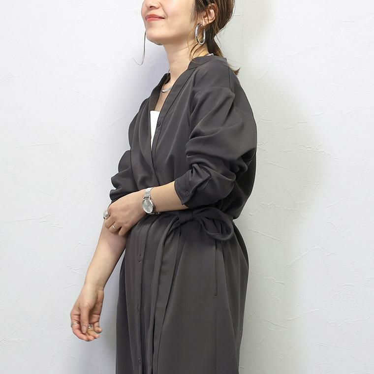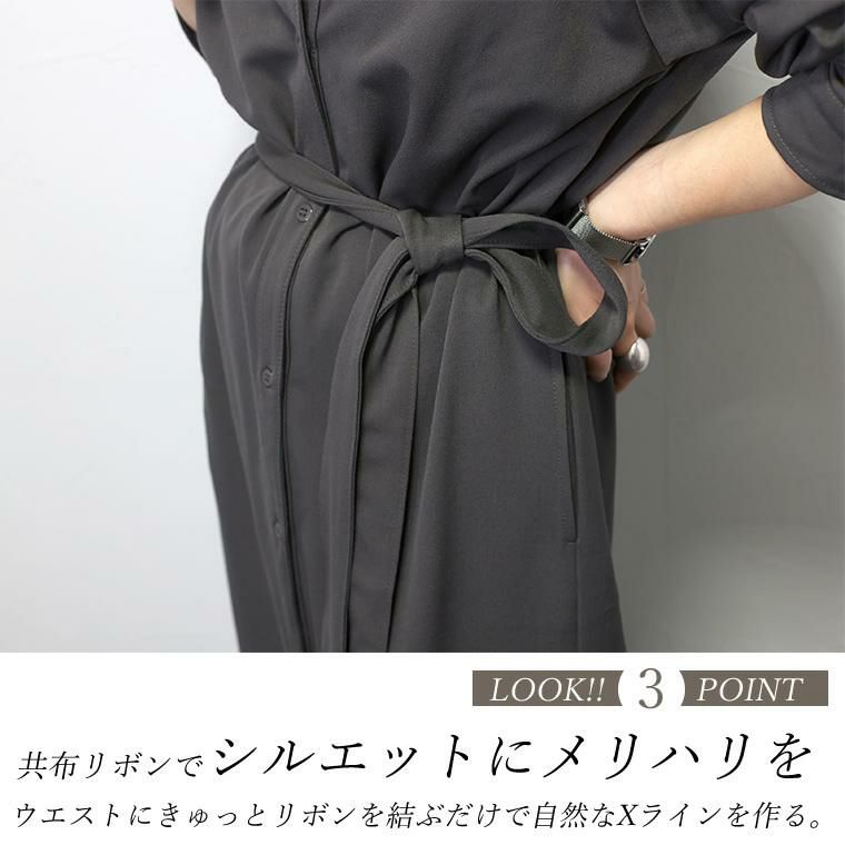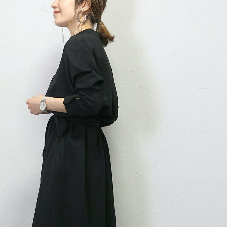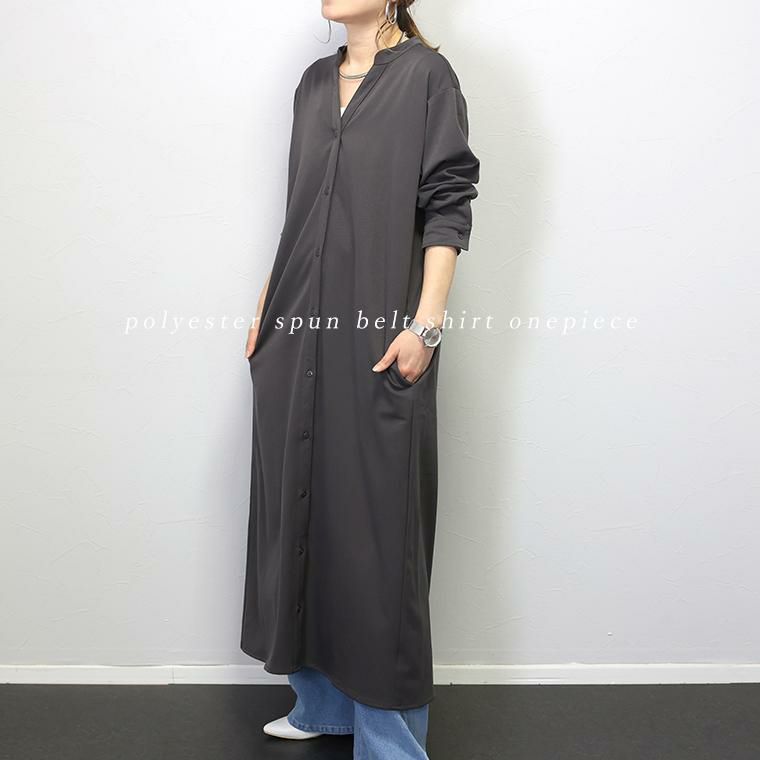 エステルスパンベルト付シャツワンピース すらっと着られるロングシルエットのシャツワンピース。きちんとした印象を与えるなめらかなツイル生地で、ほどよい厚みがあり透け感も気にせず着用できる。角度によって生まれる光沢が品よく大人ルックス。ワンピースとしてはもちろん、羽織りとしても着られる前ボタンデザインはマルチに活躍◎さっと羽織るだけで縦ラインを強調し、スタイルアップ効果も。シンプルなデザインながらも知的な襟元やおしゃれなロングシルエットなど美人ディテールを利かせ、大人に似合う一着へ。 品よくきれい見え【 エステルスパンシリーズ 】 はこちら