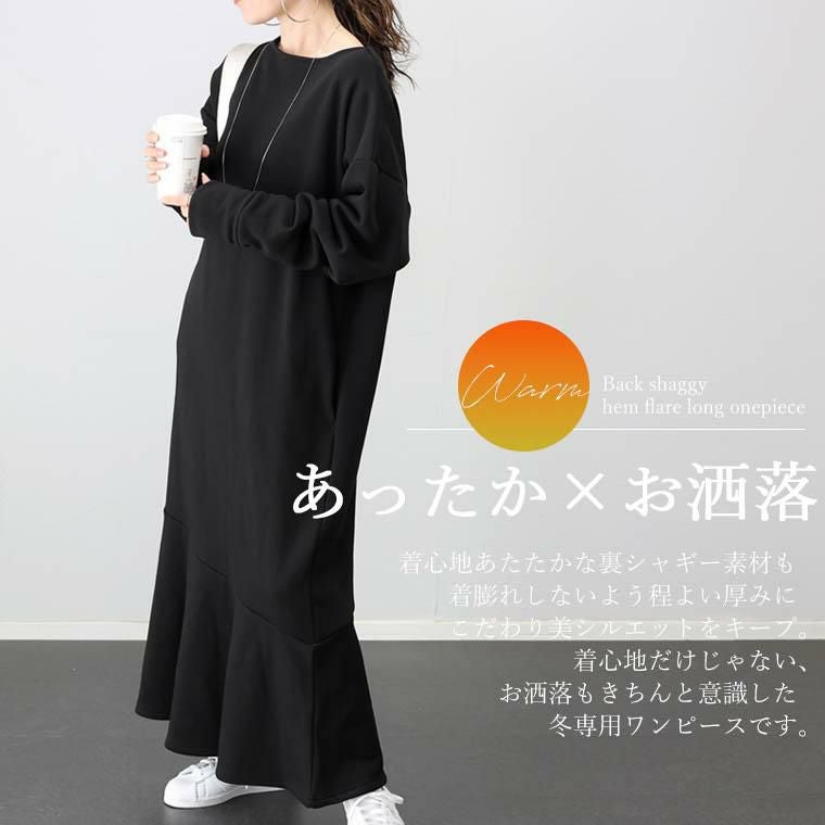 裏シャギー裾フレアロングワンピース 【メール便不可】
