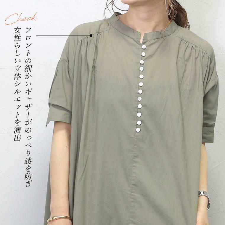 これからの季節に最適なインドコットンで仕立てたロングワンピース。抜群に柔らかく肌触りの良いインド綿を使用。風をはらんで揺れる軽い素材感で見た目も着心地も涼しげ。やさしく自然な風合いが魅力です。繊細なギャザーをふんだんにあしらい裾に向かって広がるシルエットは、着ているだけでサマになり存在感のあるエフォートレスな雰囲気に。胸元に並ぶ貝ボタンも着映えるポイント。ボタンを開けて着こなしを楽しめるのも嬉しい。リラックスしておしゃれを楽しめる大人の女性におすすめのワンピースです。