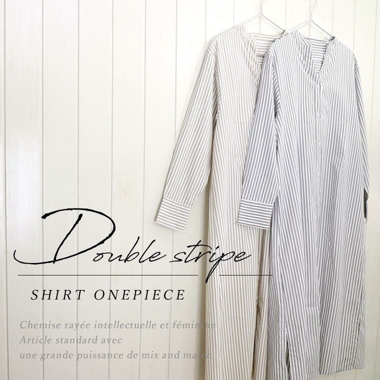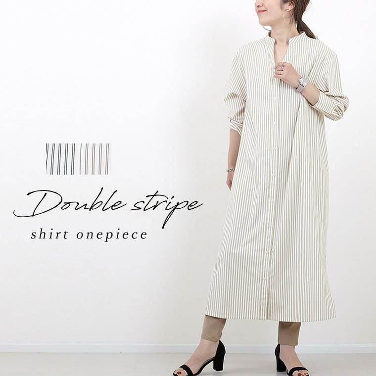 期間限定セール★ダブルストライプ前開きシャツワンピース 【メール便可/ma3】 【返品交換不可】