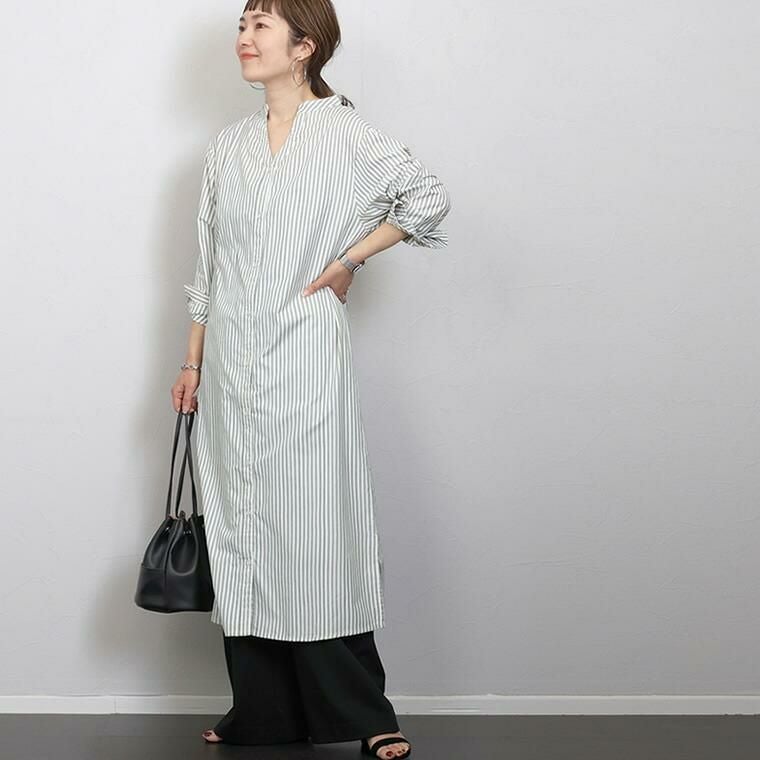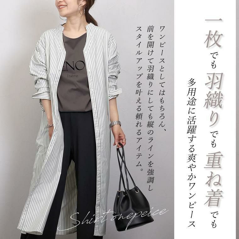 一枚でも羽織りでも重ね着でも活躍する爽やかシャツワンピース