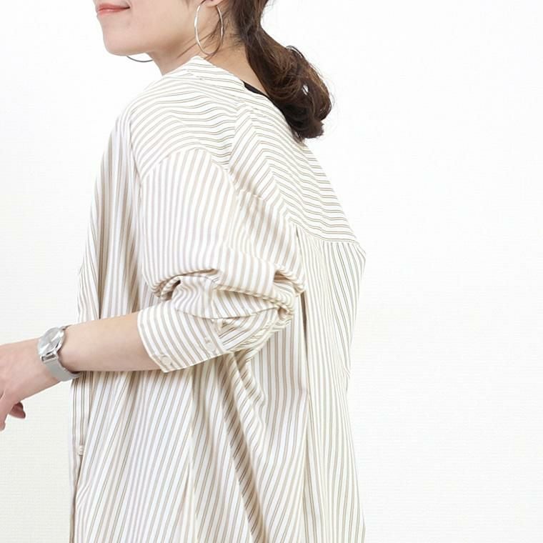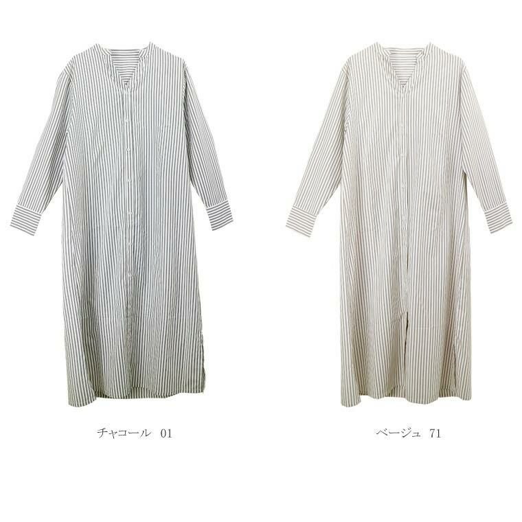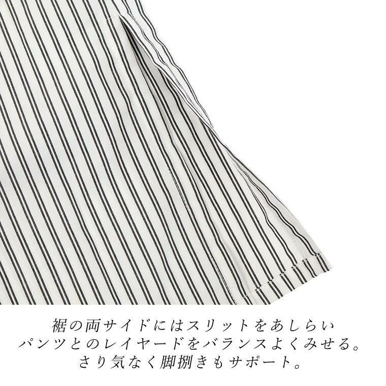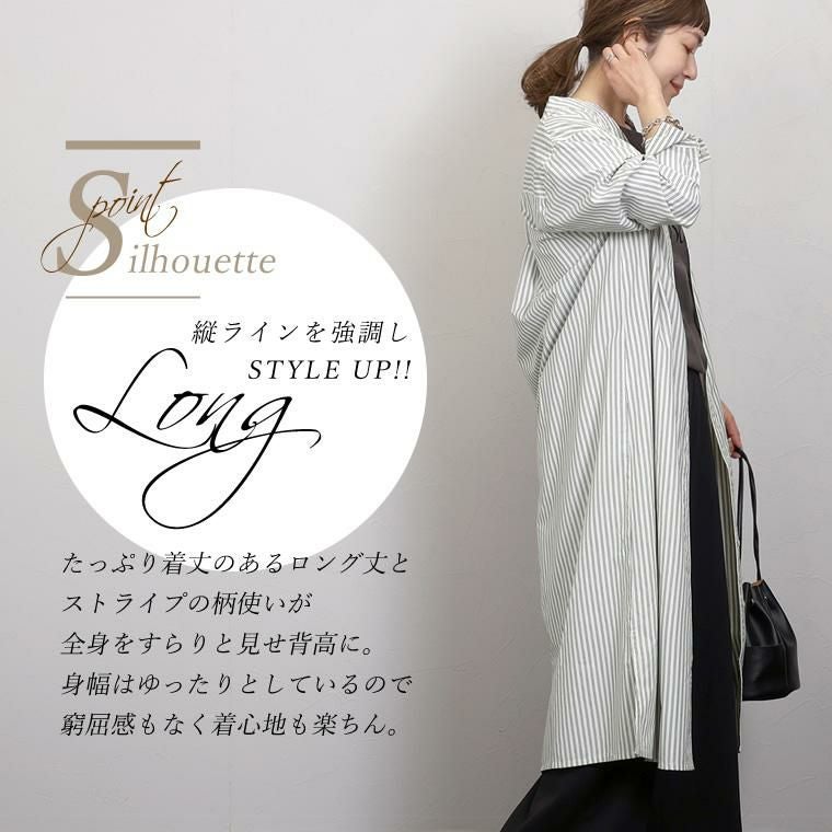 強調するストライプ柄がスタイルアップへと導くロングシャツワンピース。