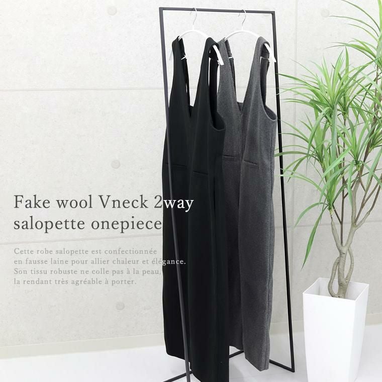 フェイクウールVネック2WAYサロペットワンピース 【メール便不可】