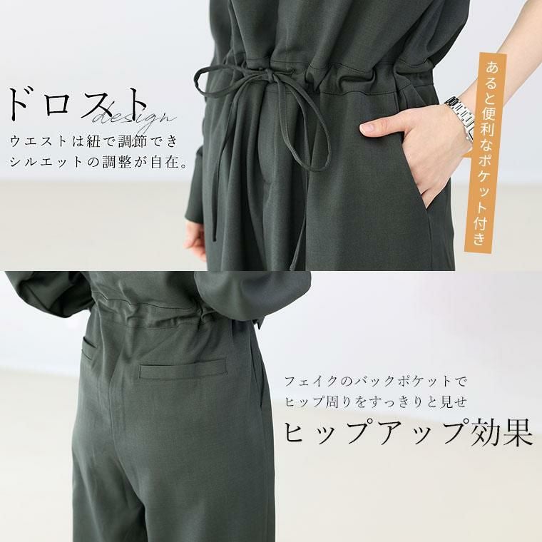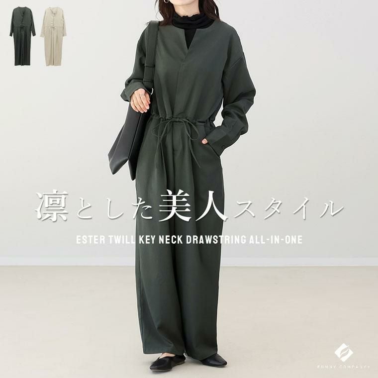 エステルツイルキーネックドロストオールインワン