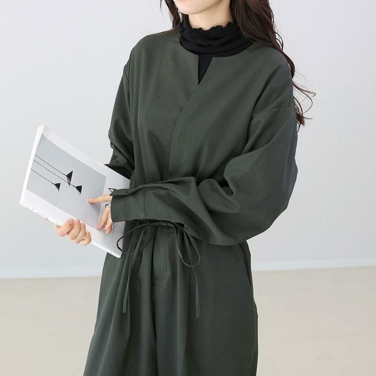 着丈はかかとから11cm下。袖丈は手首から15cm下。私が着ると大きめなので裾は完全にズってしまいました。衿もやや深く開いているのでインナー注意です。伸縮性はありませんが窮屈感はありません。