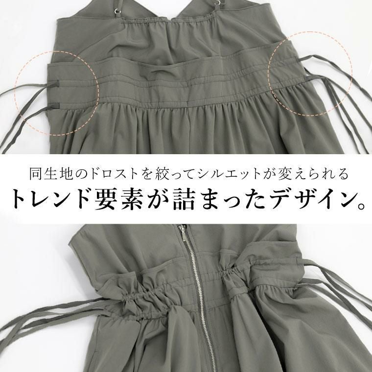 【ドロストとジップが印象的なキャミソールワンピース】