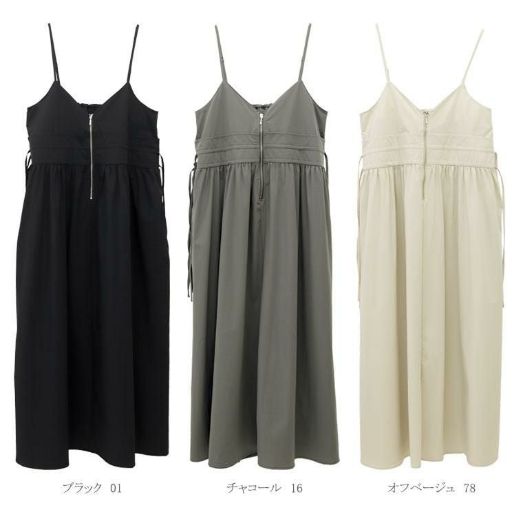 ドロストとジップが印象的なキャミソールワンピース