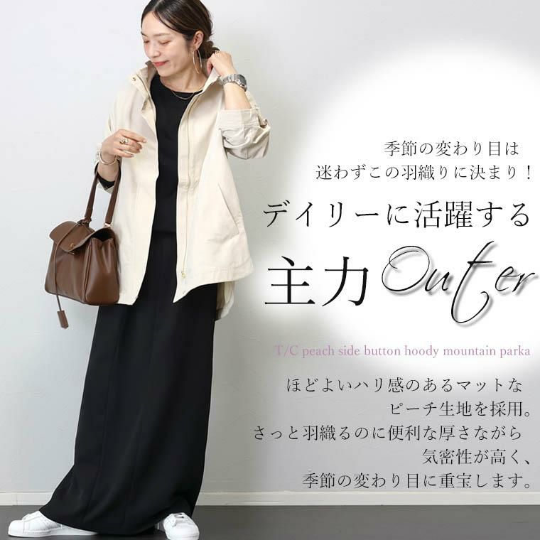 スタンドカラーT/Cピーチサイドボタンマウンテンパーカー
