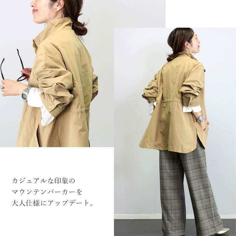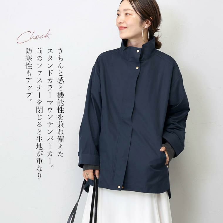上品さと女性らしさを備えたスタンドカラーきれいめマウンテンパーカー