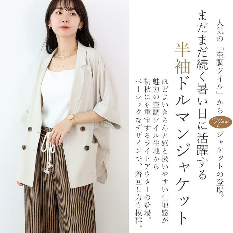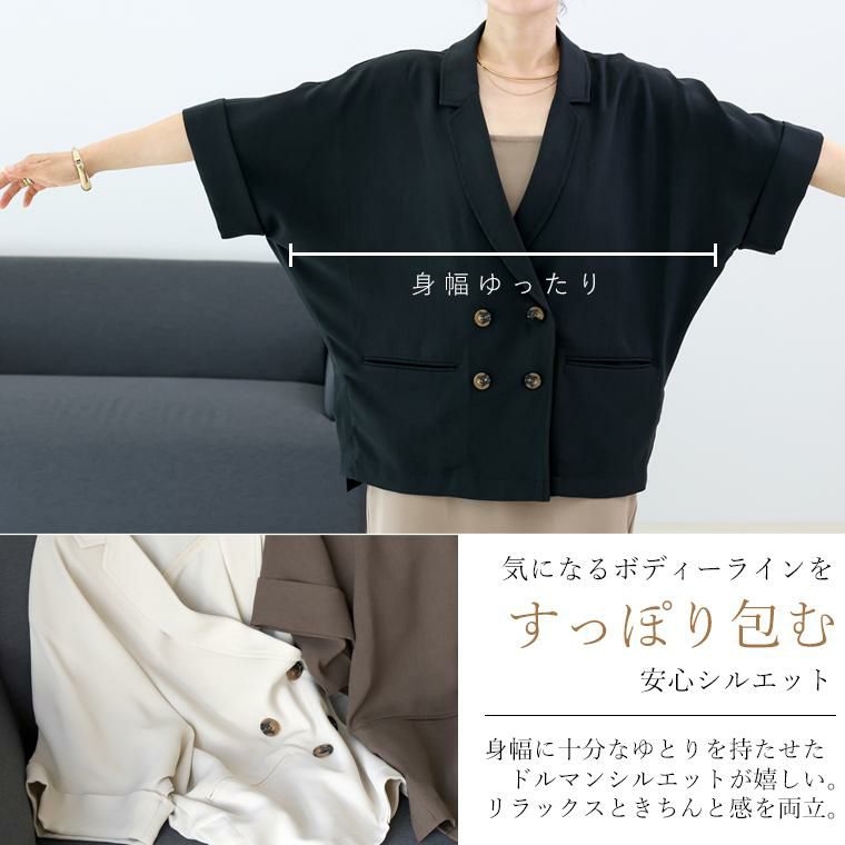 ジャケット ライトジャケット ライトアウター ドルマン アウター ダブル ダブルブレステッド 羽織り はおり 羽織 半袖 ハーフスリーブ 防寒 季節の変わり目 体型カバー 日焼け対策 日焼け防止 ひやけたいさく ひやけぼうし ひよけ クーラー対策 冷房対策 温度調節 気温調節 杢調ツイル 杢調 ツイル とろみ 薄手 スコッチボタン 深V Vネック キレイ見え きれいめ キレイめ 綺麗め 上品 楽ちん ゆるめ ゆったり ボタン 袖デザイン リラックス おしゃれ お洒落 体型カモフラージュ 大人め ブラック 黒 くろ ぶらっく グレージュ カラバリ豊富 大きめ 大きい ワンマイルウエア ワンマイルウェア レディースファッション 無地 ラクチン らくちん 楽ちん 動きやすい プラスサイズ 着痩せ 華奢見え 脚長 脚長効果 ゆったりサイズ ゆる すっきり カバー 体型カバー きちんと シンプル カジュアル ナチュラル ベーシック オフィス オフィスカジュアル テレワーク 会議 食事会 ランチ 女友達 参観日 二次会 飲み会 上品 知的 女性らしい 女らしい 着映え オンライン飲み会 着回し 大人 大人カジュアル オトナ 女性 綺麗 きれい キレイ キレイめ 高見え 上質 大きいサイズ 細見え 女性服 アースカラー フリーサイズ 楽 ノンストレス 動きやすい ゆったり 高級感 母の日 プレゼント ギフト 贈り物 S M L LL 2L XL 20代 30代 40代 50代 おしゃれ パ―ト バイト 仕事 仕事用 ユニフォーム 春夏 春 夏 秋冬 秋 冬 お洒落 オシャレ かわいい 可愛い カワイイ かっこいい カッコいい FUNNY COMPANY ファニーカンパニー ふぁにーかんぱにー ファニカン