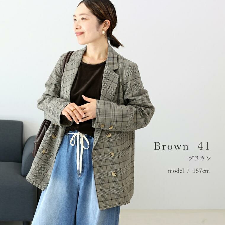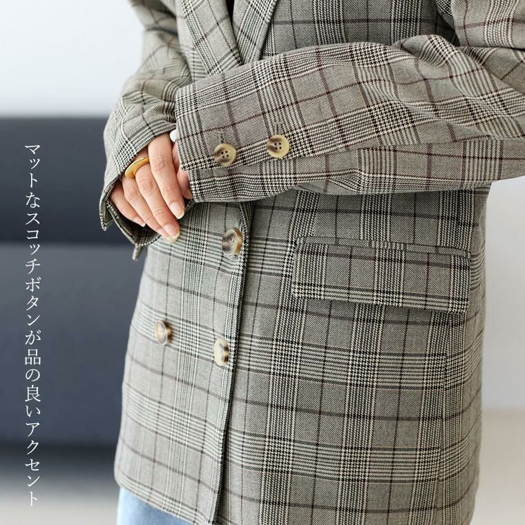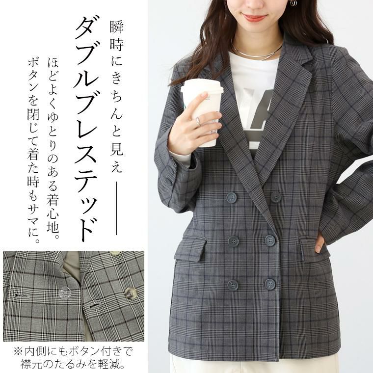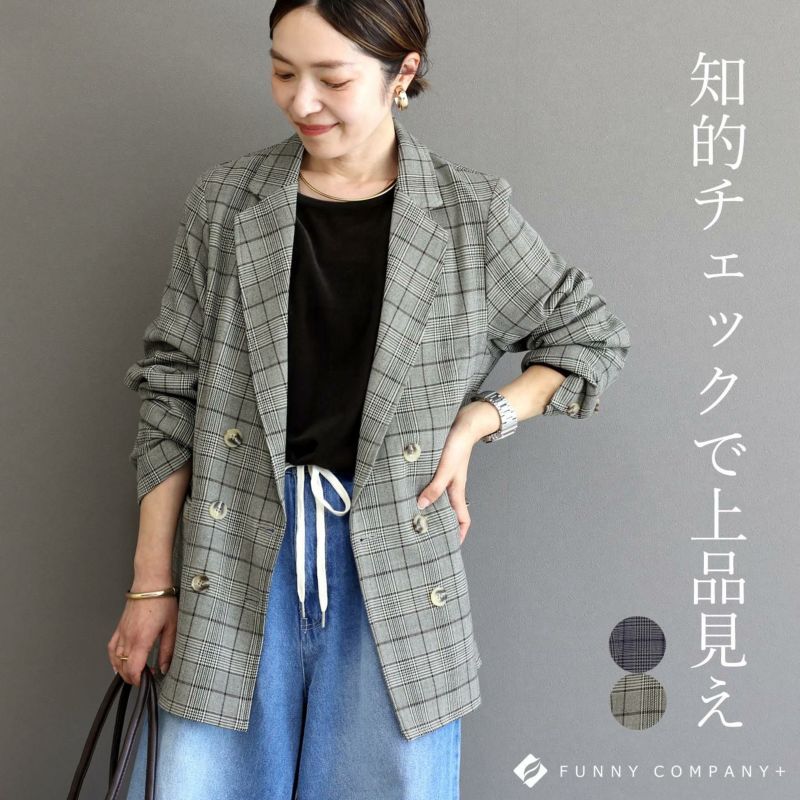 ジャケット アウター 羽織り ライトアウター ダブル ダブルジャケット ダブルブレステッド テーラード テーラードジャケット 長袖 先染め チェック 華奢 着痩せ 透けない 着やすい Vネック 深V スコッチボタン ボタン ポケット センターベント シンプル キレイ見え きれいめ キレイめ 綺麗め 上品 楽ちん イージー イージー素材 ルーズ ゆるめ ゆったり リラックス おしゃれ お洒落 体型カモフラージュ 大人め チャコール グレー 灰色 ブラウン 茶色 カラバリ豊富 大きめ 大きい ワンマイルウエア ワンマイルウェア レディースファッション 無地 ラクチン らくちん 楽ちん 動きやすい プラスサイズ 着痩せ 華奢見え 脚長 脚長効果 ゆったりサイズ ゆる すっきり カバー 体型カバー きちんと シンプル カジュアル ナチュラル ベーシック オフィス オフィスカジュアル テレワーク 会議 食事会 ランチ 女友達 参観日 二次会 飲み会 上品 知的 女性らしい 女らしい 着映え オンライン飲み会 着回し 大人 大人カジュアル オトナ 女性 綺麗 きれい キレイ キレイめ 高見え 上質 大きいサイズ 細見え 女性服 アースカラー フリーサイズ 楽 ノンストレス 動きやすい ゆったり 高級感 母の日 プレゼント ギフト 贈り物 S M L LL 2L XL 20代 30代 40代 50代 おしゃれ パ―ト バイト 仕事 仕事用 ユニフォーム 春夏 春 夏 秋冬 秋 冬 お洒落 オシャレ かわいい 可愛い カワイイ かっこいい カッコいい FUNNY COMPANY ファニーカンパニー ふぁにーかんぱにー ファニカン