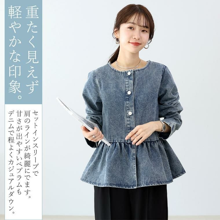 アウター ジャケット デニム ペプラム ノーカラー パイピング 40代 30代 体型カバー きれいめ キレイめ 綺麗め 上品 おしゃれ お洒落 大人め ブラック 黒 くろ ブルー 青 カラバリ豊富 大きめ 大きい ワンマイルウエア ワンマイルウェア レディースファッション 無地 ラクチン らくちん 楽ちん 動きやすい プラスサイズ 着痩せ 華奢見え 脚長 脚長効果 ゆったりサイズ ゆる すっきり カバー きちんと シンプル カジュアル ナチュラル ベーシック オフィス オフィスカジュアル テレワーク リモートワーク リモート 会議 食事会 ランチ 女友達 参観日 二次会 飲み会 上品 知的 女性らしい 女らしい 着映え オンライン飲み会 着回し 大人 大人カジュアル オトナ 女性 綺麗 きれい キレイ キレイめ 高見え 上質 上品 大きめ 大きい 大きいサイズ 体型カバー 華奢見え 着痩せ 細見え 着回し 大人 大人カジュアル オトナ 女性 綺麗 女性 女性服 アースカラー フリーサイズ レディースファッション ラクチン 楽 らくちん 楽ちん ノンストレス 動きやすい プラスサイズ 着回し プラスサイズ ゆったり ゆったりサイズ ゆる すっきり シンプル 無地 きれい キレイ きれいめ キレイめ 高見え 上質 高級感 母の日 プレゼント ギフト 贈り物 S M L LL 2L XL 20代 50代 おしゃれ パ―ト バイト 仕事 仕事用 ユニフォーム 春夏 春 夏 秋冬 秋 冬 お洒落 オシャレ かわいい 可愛い カワイイ かっこいい カッコいい FUNNY COMPANY ファニーカンパニー ふぁにーかんぱにー ファニカン