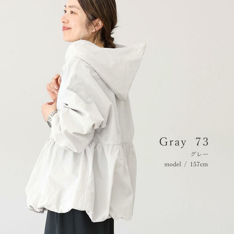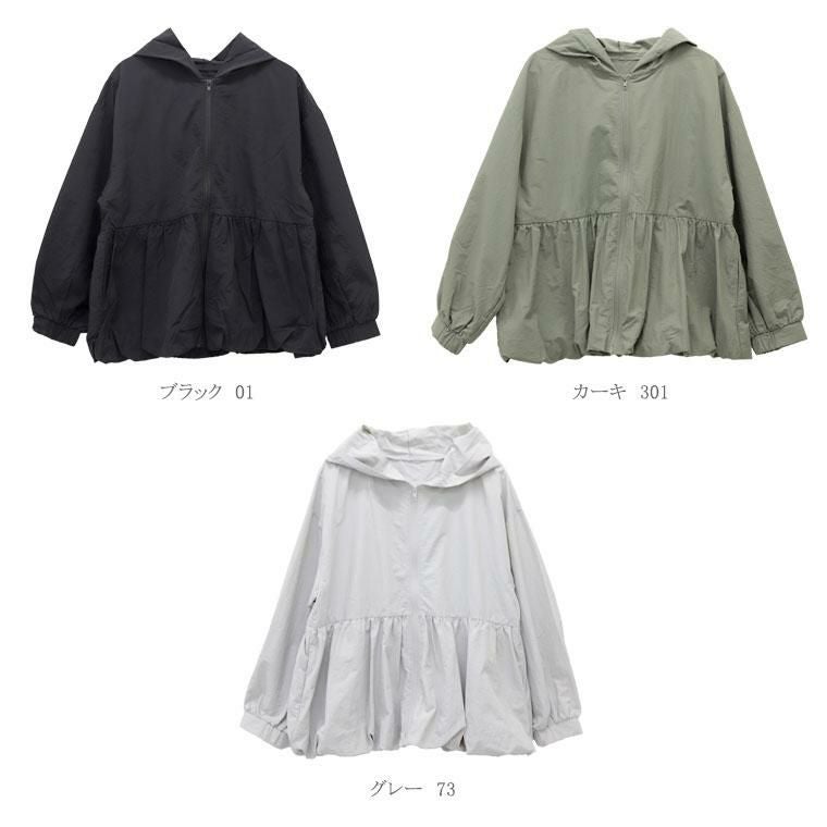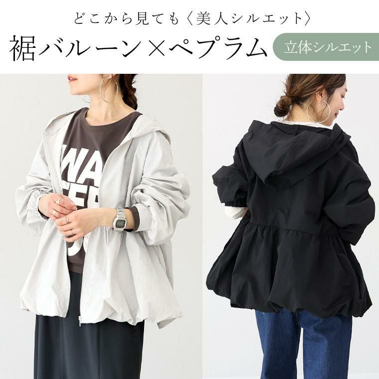 ナイロンワッシャー裾バルーンペプラムフードパーカー 【メール便不可】