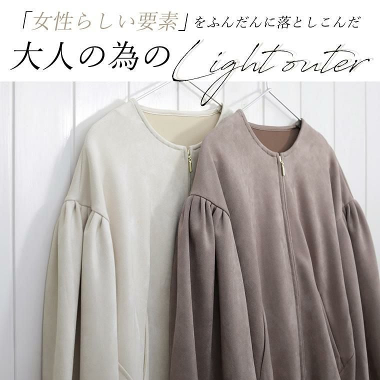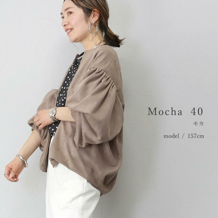 他の画像を見る 理想の立体フォルム 女性らしさを落としこんだ大人の為のライトアウター スエードポンチノーカラー袖タックブルゾン 【メール便不可】 ¥ 5,390 税込 カートに入れる お気に入りに登録する