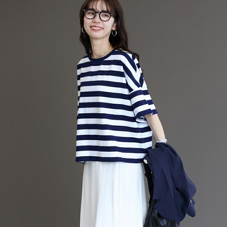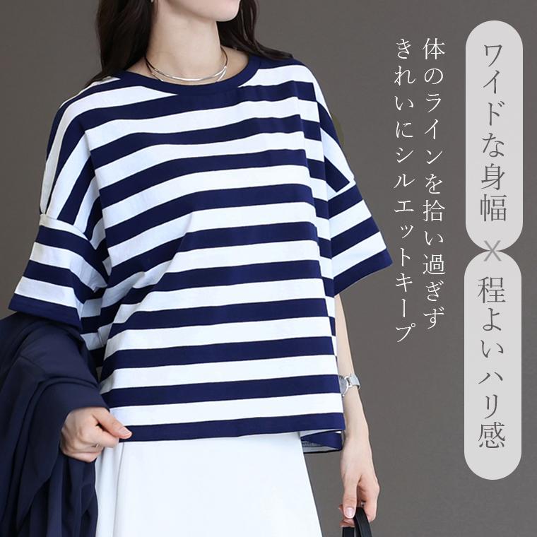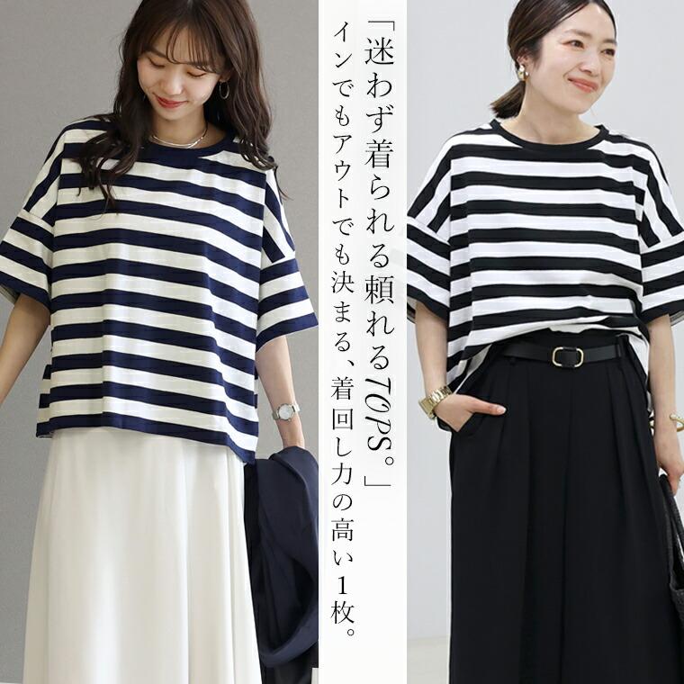 他の画像を見る 配色とシルエットで整える、大人のためのボーダーカットソー 【未発売新作】新作72H限定クーポン利用で10%OFF★5月6日10時発売開始★綿天竺半袖ボーダーワイドプルオーバー 【メール便可/ma3】 通常販売価格 ¥ 3,740 税込 販売開始前です。 販売期間 2026/05/06 10:00 〜 2026/05/09 10:00 カートに入れる お気に入りに登録する