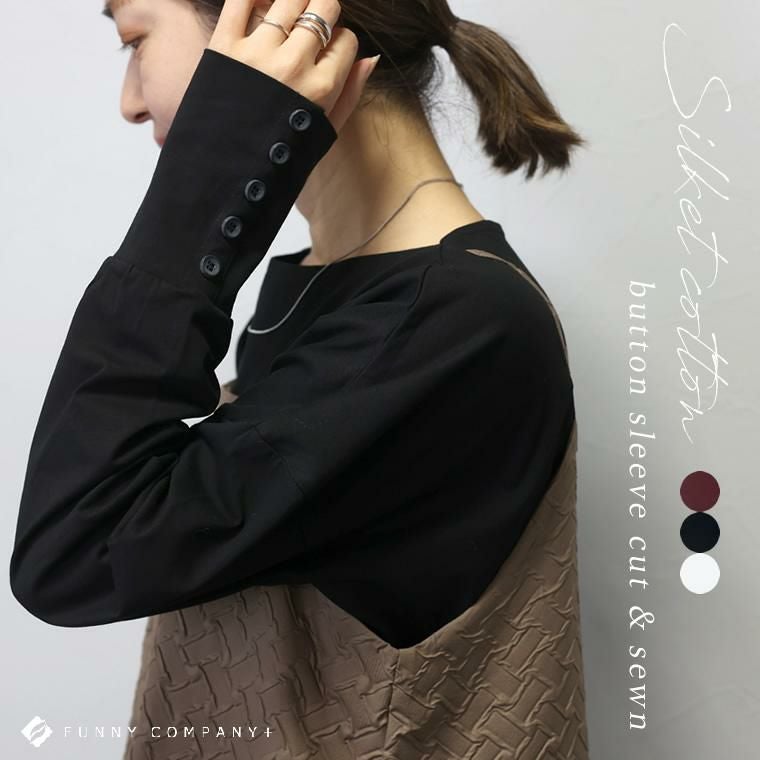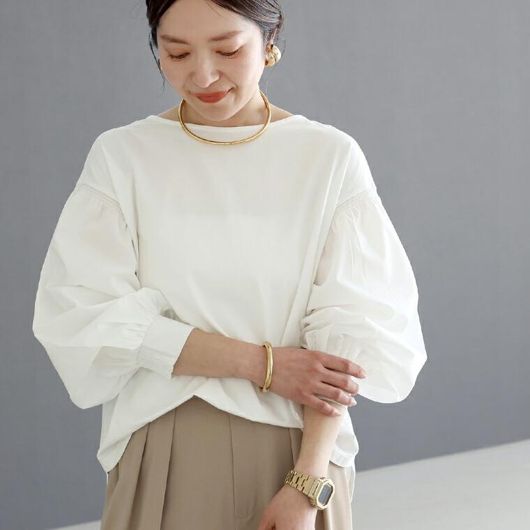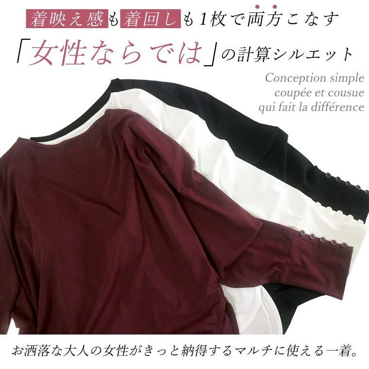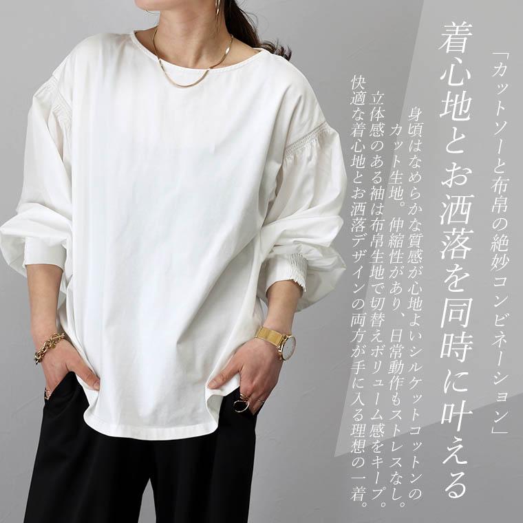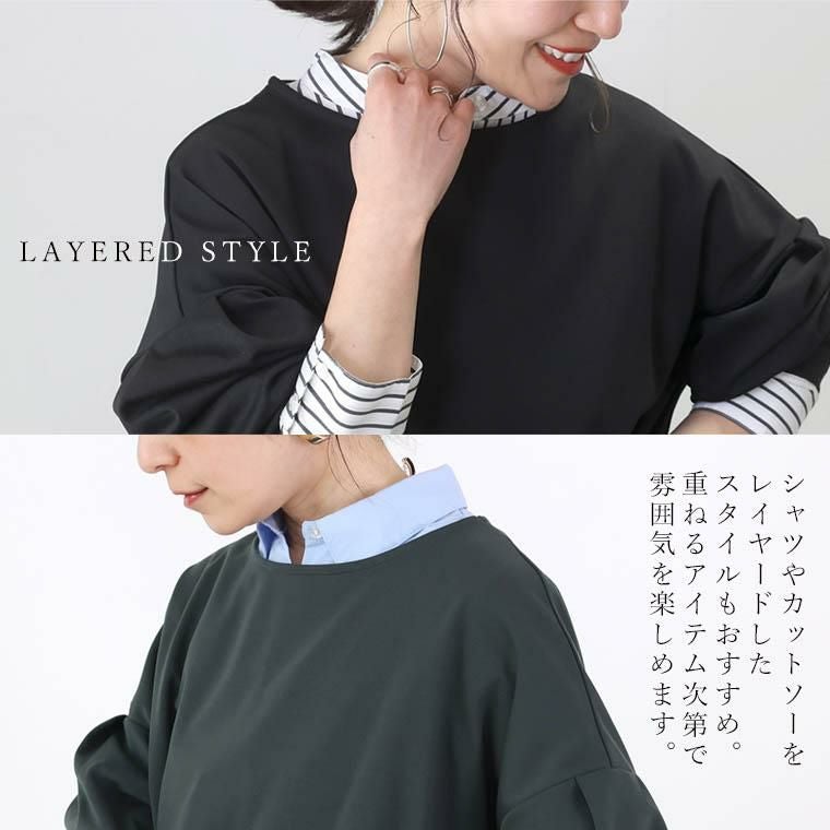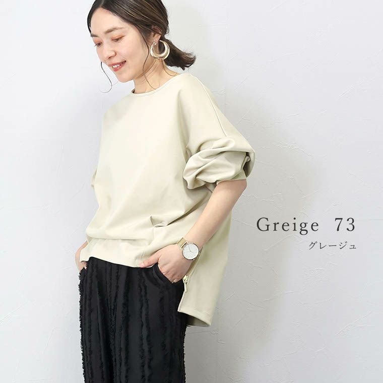他の画像を見る シャーリングのシャツ袖が上品に着映えるデザイントップス シルケットスムース布帛袖切替ブラウスカットソー 【メール便可/ma1.5】 ¥ 4,290 税込 カートに入れる お気に入りに登録する