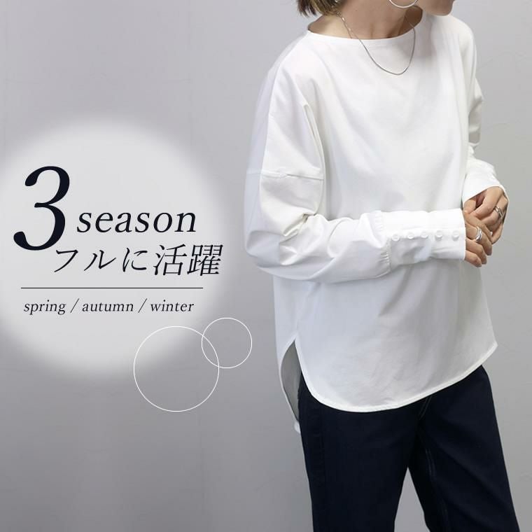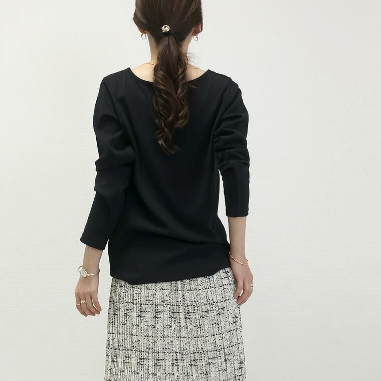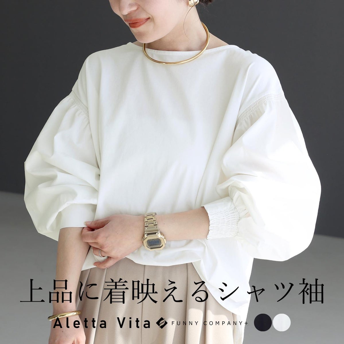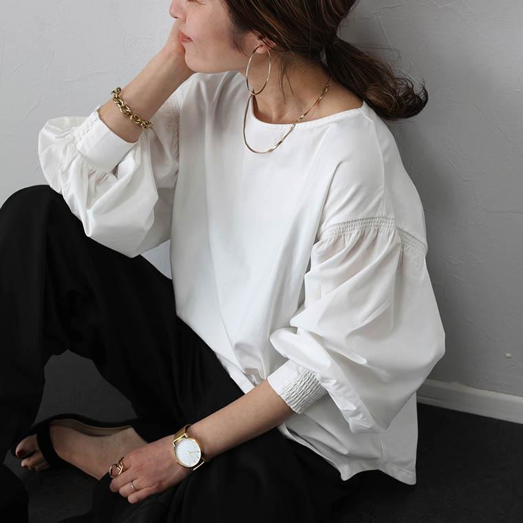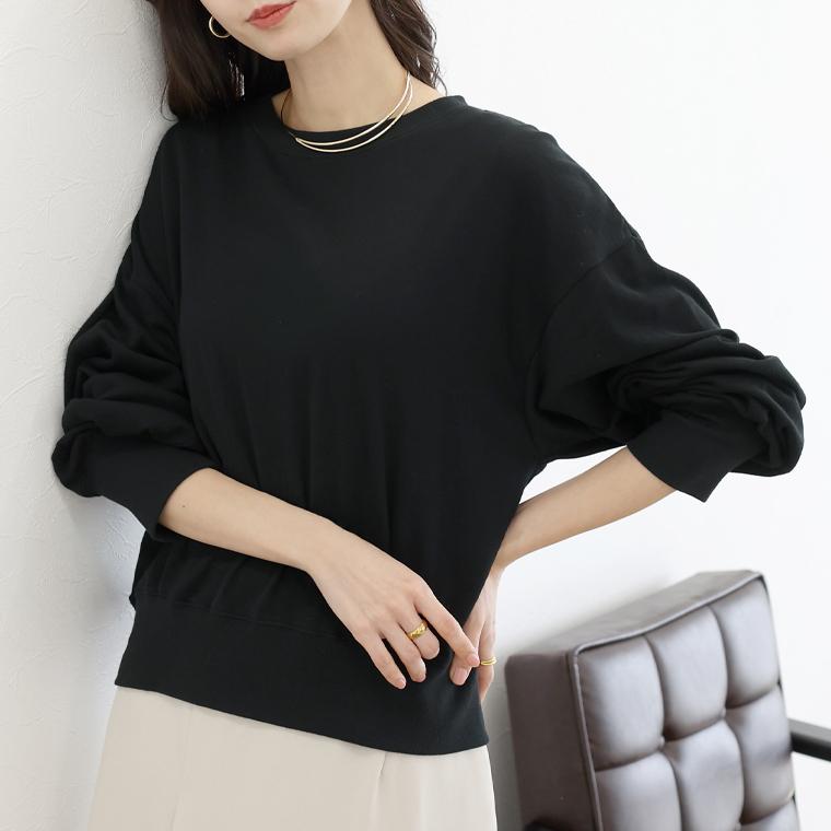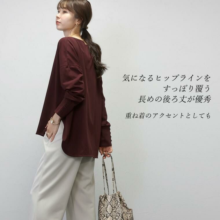 他の画像を見る シャーリングのシャツ袖が上品に着映えるデザイントップス シルケットスムース布帛袖切替ブラウスカットソー 【メール便可/ma1.5】 ¥ 4,290 税込 カートに入れる お気に入りに登録する