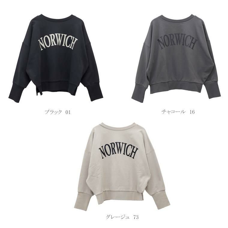 大人の女性に似合うようこだわって企画したカジュアルの王道、ロゴトップス。生地は程よいハリ感と上質さを重視した綿100%のスウェット素材。毛玉になりづらく、しかも風合い良く肌にも環境にも優しい、デイリーに扱いやすい生地を選びました。たっぷり身幅をもたせたドルマンシルエットとボートネックの掛け合わせが絶妙。見た目はすっきり、着心地はゆったりのシルエットを実現します。目を惹くロゴは、シンプルながら上半身をコンパクトにみせる大きさで、カジュアルさを残しつつ上品に見えるフォントを採用。コントラストが強すぎないよう色も調節しています。さらに、前後で着られバックロゴトップスとしても楽しめる。コーディネートや好みに合わせてご活用いただけます。※「NORWICH(ノリッチ)は、イングランドの東部に位置する美しい都市の名前です。」