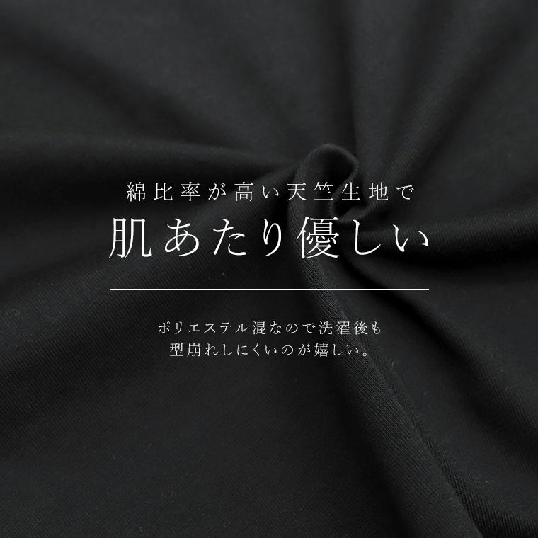 着丈はヒップが3分の2隠れるくらい。袖丈は手首から7cm下。伸縮性はありませんが中にインナーを重ねても窮屈感はありません。首まわりは広くなく安心感があります。ベーシックなのでコーデしやすく◎。