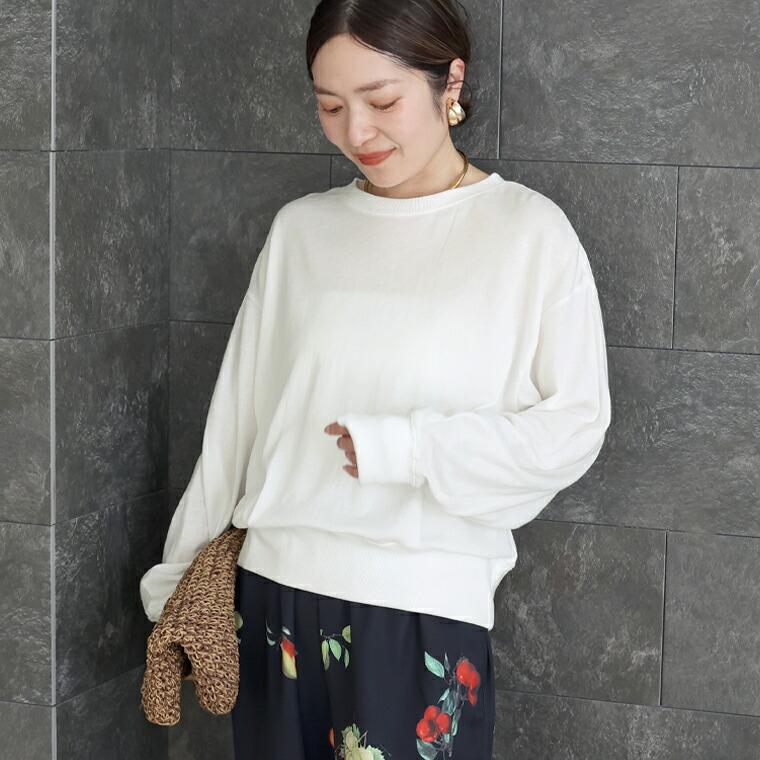 ほんのりシアー、柔らか感触の裏毛プルオーバー