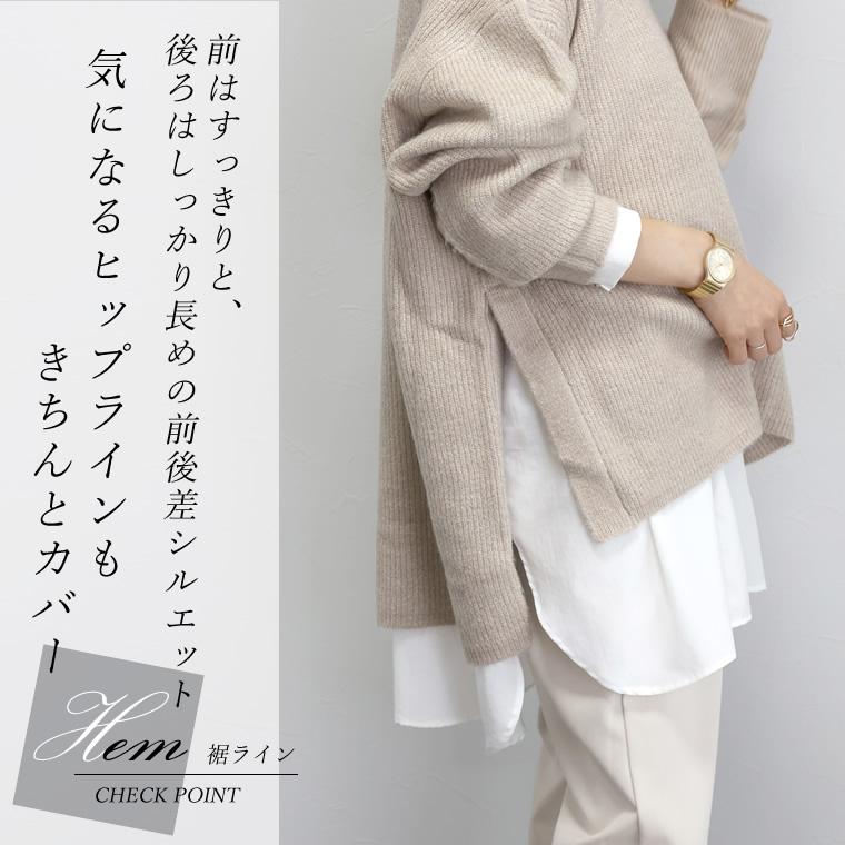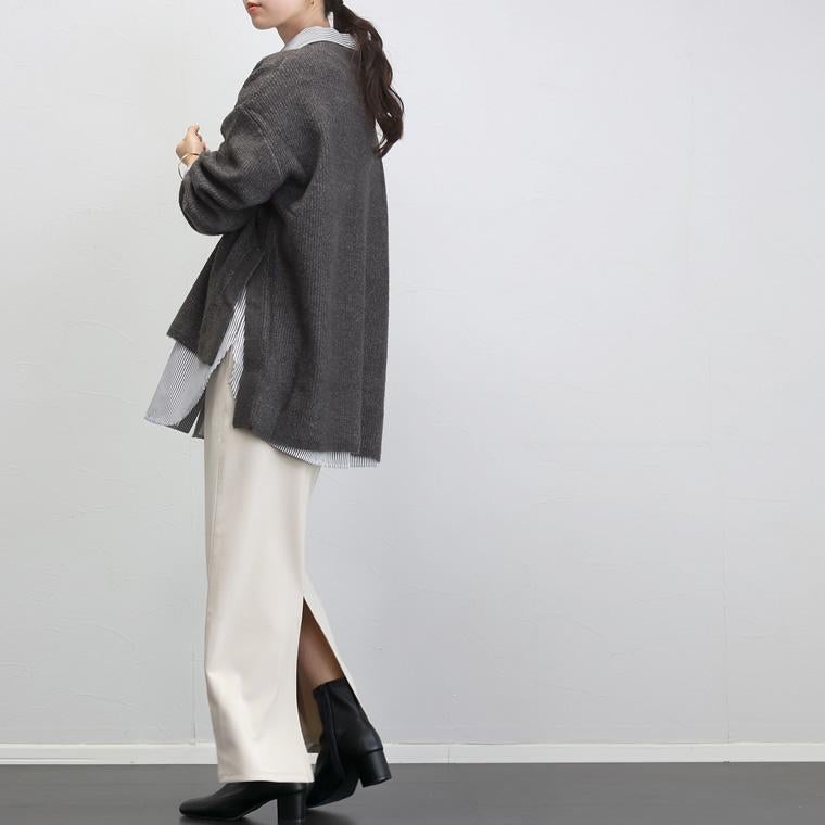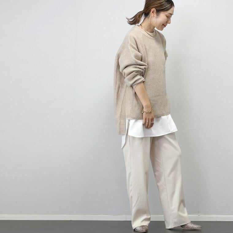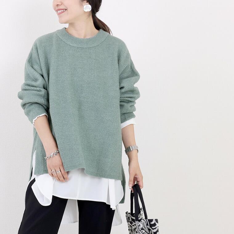 5G片畦サイドスリットニットプルオーバー サイドに旬のスリットを施した、シンプルながらもサマになる一枚。 シャープなスリットがあることでスタイル全体を軽やかに見せて くれ、抜け感漂う着こなしに。また、長め丈のシャツやカットソー をインに合わせたレイヤードもバランスよくお洒落にキマります。 ゆったりとした着心地で、ヒップまでしっかりカバーしてくれる 長めの後ろ丈もポイント。毛足の長い混ざり糸で編み上げ、 単色ながらも奥行きのある表情。高見えが狙え、 大人のニットコーデを格上げしてくれるアイテムです。 合わせるボトムを選ばず、着まわし力も抜群。