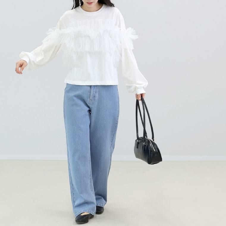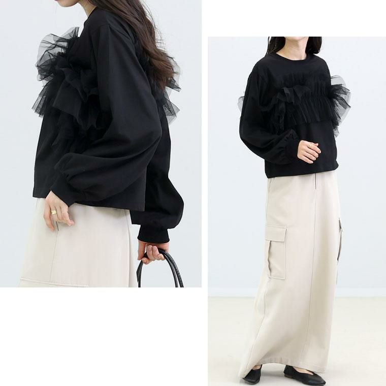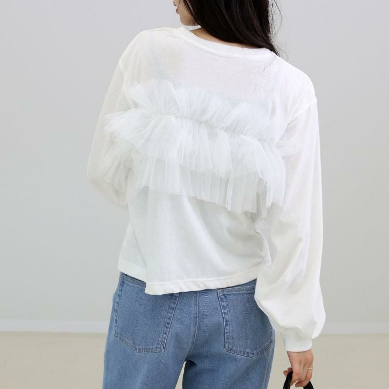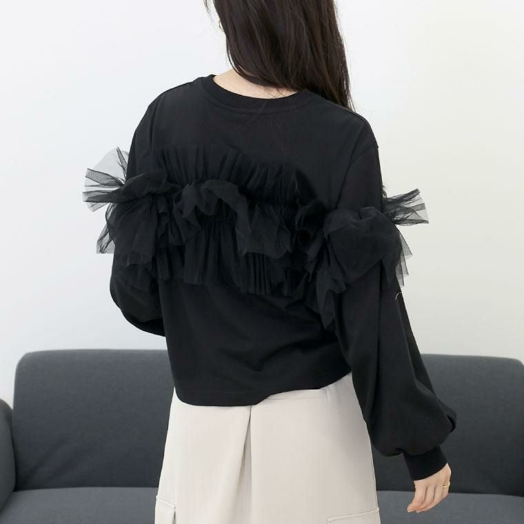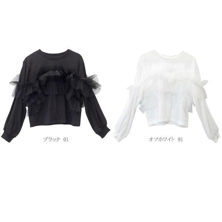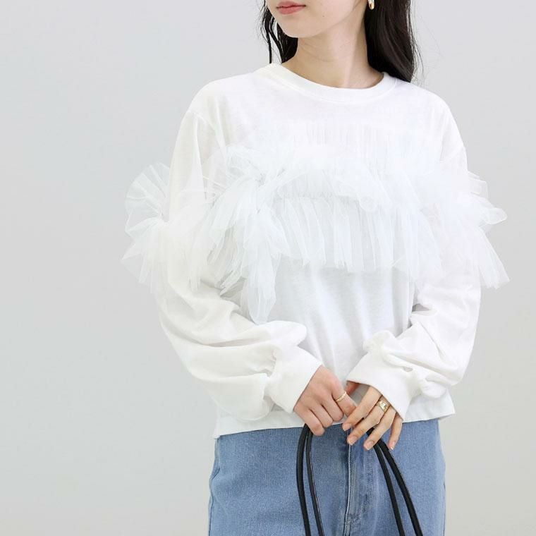 【揺れるチュールが可憐さを醸し出すチュールプルオーバー】