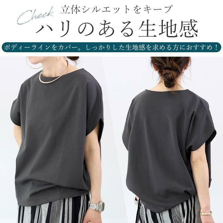 プルオーバー カットソー トップス ポンチ カット 半袖 ドルマン 華奢 着痩せ 透けない 伸縮 着やすい 立体 コクーン ボートネック デコルテ シンプル キレイ見え きれいめ キレイめ 綺麗め 上品 楽ちん イージー イージー素材 ルーズ ゆるめ PO クルーネック ゆったり くるーねっく リラックス おしゃれ お洒落 体型カモフラージュ 大人め ブラック クロ 黒 黒色 グレージュ ネイビー 紺 紺色 グレージュ 肌色 ショコラベージュ チャコールブラウン チャコール ブラウン 茶チャコール チョコ チョコブラウン ライトグレー ボーダー 灰色 グレー白 オフホワイト ホワイト オフベージュ ベージュ カラバリ豊富 ワンマイルウエア ワンマイルウェア レディースファッション 無地 ラクチン らくちん 楽ちん 動きやすい すっきり 体型カバー きちんと カジュアル ナチュラル ベーシック 食事会 ランチ 女友達 参観日 二次会 飲み会 知的 女性らしい 女らしい 着映え 着回し オトナ きれい 上質 細見え 女性服 アースカラー フリーサイズ レディースファッション ノンストレス 動きやすい 高級感 母の日 プレゼント ギフト 贈り物 20代 30代 40代 50代 パ―ト バイト 仕事 仕事用 ユニフォーム 春夏 春 夏 オシャレ FUNNY COMPANY ファニーカンパニー ふぁにーかんぱにー ファニカン