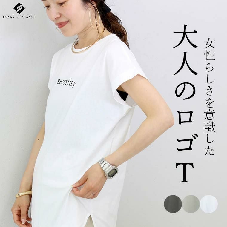プルオーバー カットソー トップス Tシャツ フレンチ袖 フレンチ 綿 コットン 綿T ロゴ ろご ロゴT フレンチ・ロゴ フレンチロゴ 着やすい ラウンドネック デコルテ シンプル キレイ見え きれいめ キレイめ 綺麗め 上品 楽ちん イージー イージー素材 リラックス おしゃれ お洒落 着丈長め 重ね着 レイヤード 大人め ネイビー チャコール ちゃこーる グレージュ ぐれーじゅ 白 オフホワイト ホワイト カラバリ豊富 大きめ 大きい ワンマイルウエア ワンマイルウェア レディースファッション 無地 ラクチン らくちん 楽ちん 動きやすい プラスサイズ 着痩せ 華奢見え 脚長 脚長効果 ゆったりサイズ カバー きちんと シンプル カジュアル ナチュラル ベーシック オフィス オフィスカジュアル テレワーク リモートワーク リモート 会議 食事会 ランチ 女友達 参観日 二次会 飲み会 上品 知的 女性らしい 女らしい 着映え オンライン飲み会 着回し 大人 大人カジュアル オトナ 女性 綺麗 きれい キレイ キレイめ 高見え 上質 上品 大きめ 大きい 大きいサイズ 体型カバー 華奢見え 着痩せ 細見え 着回し 大人 大人カジュアル オトナ 女性 綺麗 女性 女性服 アースカラー フリーサイズ レディースファッション ラクチン 楽 らくちん 楽ちん ノンストレス 動きやすい プラスサイズ 着回し プラスサイズ ゆったり ゆったりサイズ ゆる すっきり シンプル 無地 きれい キレイ きれいめ キレイめ 高見え 上質 高級感 母の日 プレゼント ギフト 贈り物 S M L LL 2L XL 20代 30代 40代 50代 おしゃれ パ―ト バイト 仕事 仕事用 ユニフォーム 春夏 春 夏 秋冬 秋 冬 お洒落 オシャレ かわいい 可愛い カワイイ かっこいい カッコいい FUNNY COMPANY ファニーカンパニー ふぁにーかんぱにー ファニカン