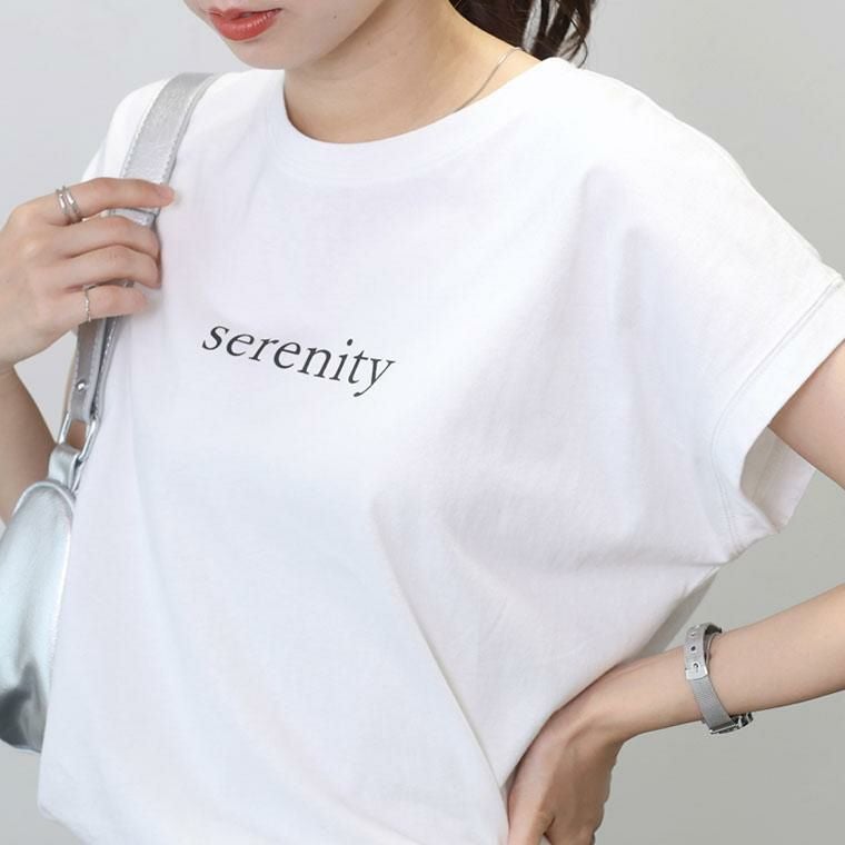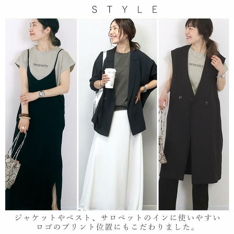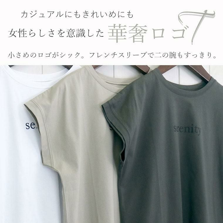 フロントに施された小さめなロゴがシックなきれいめ仕様のロゴTシャツ。丸みや高さに動きのある文字を採用し、見た目の女性らしさを重視。カジュアルになりがちなロゴプリントも、ジャケットなどのインナーとしても活躍していただける一着に。シルエットは、シンプルなラウンドネックに、二の腕をカバーしてくれるフレンチスリーブ、着心地安心の長めのチュニック丈。汗ばむ季節も体型を気にすることなく、一枚で着られるのが嬉しい。吸汗吸湿性と通気性に優れた綿100%の天竺素材で、さらり快適に過ごせます。