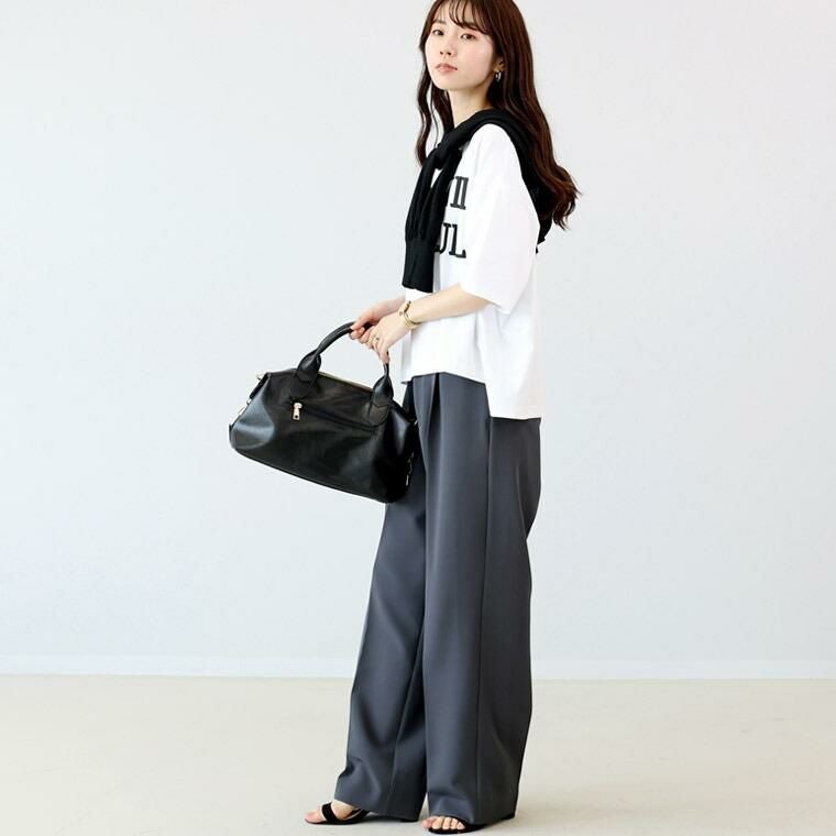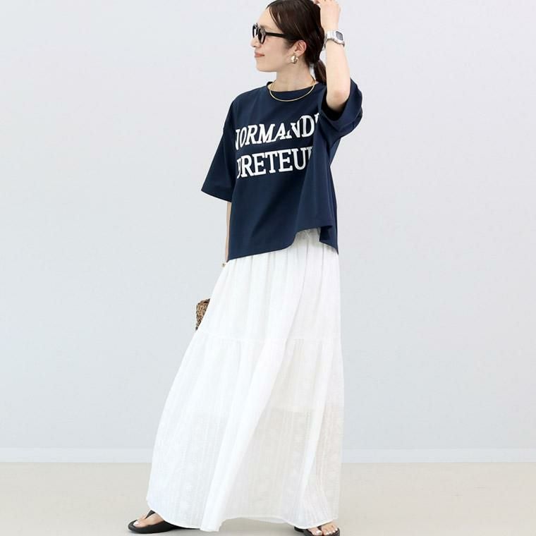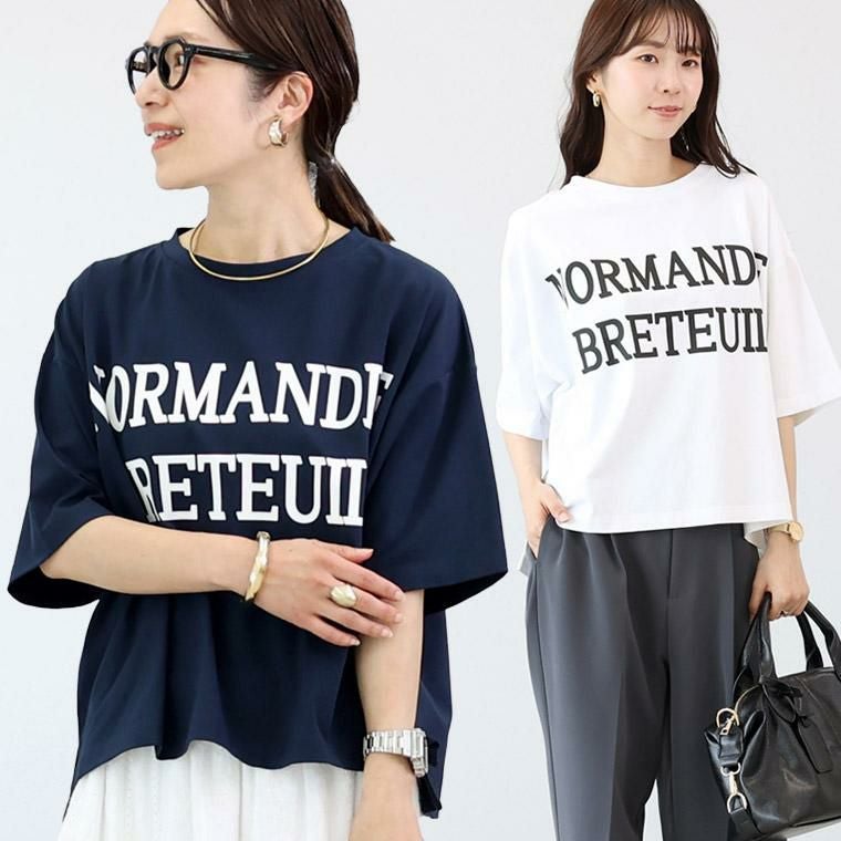 着心地と着映え、両方を叶えるために企画したロゴTシャツ。肌へのやさしさと通気性の良さが魅力の綿素材に伸縮素材を織り込み、艶感となめらかな風合いをプラス。大人のきれいめカジュアルにも対応する一着に。しかも着た瞬間ひんやりと感じる接触冷感素材で汗ばむ季節も快適、メリット満点に仕立てました。ゆとりあるワイドシルエットにくっきりとしたラバープリントのロゴがおしゃれ。ロゴのボリューム感がボディーラインをカバーしてくれる効果も。一枚ではもちろん、ジャケットやベストのINにもバランスよく着られます。華奢見えを狙うドロップショルダーは肩幅を曖昧に。二の腕がすっぽり隠れる袖丈も嬉しい。お好みでロールアップしてこなれ感をアップした着こなしもおすすめです。定番ながらもこだわりをぎゅっと集めた大人の為のロゴカットソーです。