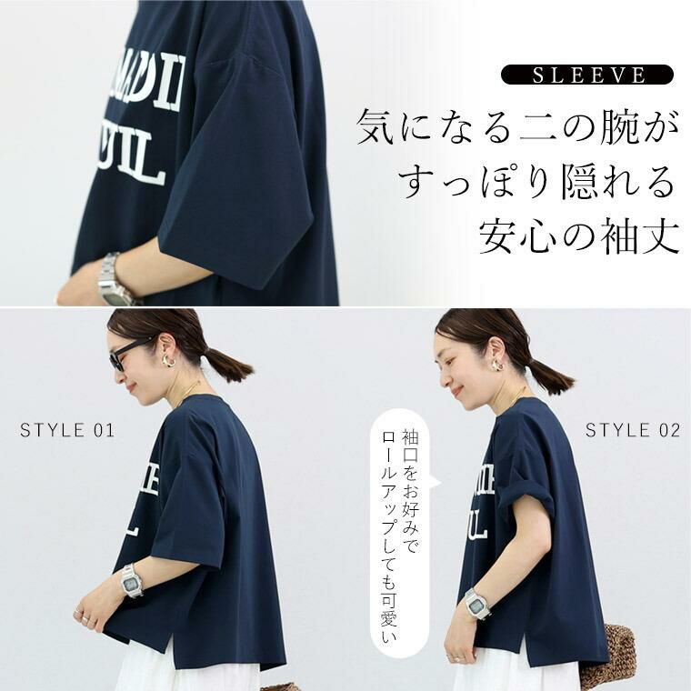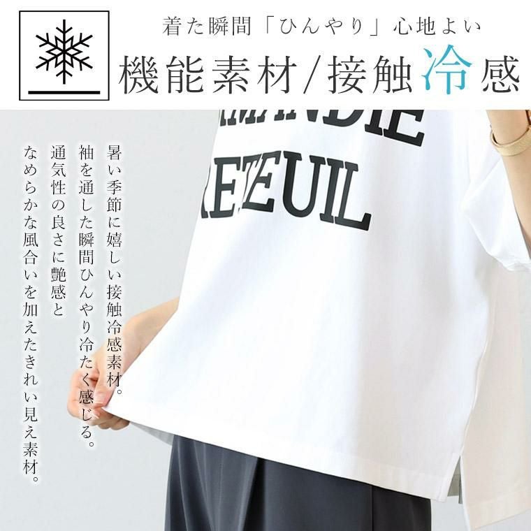 プルオーバー カットソー トップス カット 半袖 ロールアップ ドロップショルダー ワイド 前後差 スリット ロゴ プリント 接触冷感 ひんやり 機能素材 華奢 着痩せ 透けない 伸縮 ストレッチ 着やすい クルーネック デコルテ シンプル キレイ見え きれいめ キレイめ 綺麗め 上品 楽ちん イージー イージー素材 ルーズ ゆるめ PO ゆったり くるーねっく リラックス おしゃれ お洒落 体型カモフラージュ 大人め ネイビー 紺 白 オフホワイト ホワイト カラバリ豊富 大きめ 大きい ワンマイルウエア ワンマイルウェア レディースファッション 無地 ラクチン らくちん 楽ちん 動きやすい プラスサイズ 着痩せ 華奢見え 脚長 脚長効果 ゆったりサイズ ゆる すっきり カバー 体型カバー きちんと シンプル カジュアル ナチュラル ベーシック オフィス オフィスカジュアル テレワーク 会議 食事会 ランチ 女友達 参観日 二次会 飲み会 上品 知的 女性らしい 女らしい 着映え オンライン飲み会 着回し 大人 大人カジュアル オトナ 女性 綺麗 きれい キレイ キレイめ 高見え 上質 大きいサイズ 細見え 女性服 アースカラー フリーサイズ 楽 ノンストレス 動きやすい ゆったり 高級感 母の日 プレゼント ギフト 贈り物 S M L LL 2L XL 20代 30代 40代 50代 おしゃれ パ―ト バイト 仕事 仕事用 ユニフォーム 春夏 春 夏 秋冬 秋 冬 お洒落 オシャレ かわいい 可愛い カワイイ かっこいい カッコいい FUNNY COMPANY ファニーカンパニー ふぁにーかんぱにー ファニカン