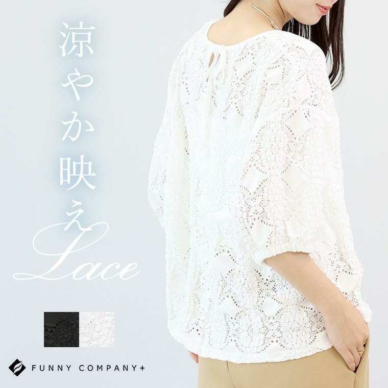 トップス プルオーバー ブラウス レース シワにならない 二の腕カバー 体型カバー 五分袖 レースブラウス オンオフ兼用 通勤 オフィスカジュアル シワになりにくい リボン バックリボン きれいめ キレイめ 綺麗め 上品 おしゃれ お洒落 大人め ブラック 黒 くろ オフホワイト 白 カラバリ豊富 大きめ 大きい ワンマイルウエア ワンマイルウェア レディースファッション 無地 ラクチン らくちん 楽ちん 動きやすい プラスサイズ 着痩せ 華奢見え 脚長 脚長効果 ゆったりサイズ ゆる すっきり カバー 体型カバー きちんと シンプル カジュアル ナチュラル ベーシック オフィス オフィスカジュアル テレワーク リモートワーク リモート 会議 食事会 ランチ 女友達 参観日 二次会 飲み会 上品 知的 女性らしい 女らしい 着映え オンライン飲み会 着回し 大人 大人カジュアル オトナ 女性 綺麗 きれい キレイ キレイめ 高見え 上質 上品 大きめ 大きい 大きいサイズ 体型カバー 華奢見え 着痩せ 細見え 着回し 大人 大人カジュアル オトナ 女性 綺麗 女性 女性服 アースカラー フリーサイズ レディースファッション ラクチン 楽 らくちん 楽ちん ノンストレス 動きやすい プラスサイズ 着回し プラスサイズ ゆったり ゆったりサイズ ゆる すっきり シンプル 無地 きれい キレイ きれいめ キレイめ 高見え 上質 高級感 母の日 プレゼント ギフト 贈り物 S M L LL 2L XL 20代 30代 40代 50代 おしゃれ パ―ト バイト 仕事 仕事用 ユニフォーム 春夏 春 夏 秋冬 秋 冬 お洒落 オシャレ かわいい 可愛い カワイイ かっこいい カッコいい FUNNY COMPANY ファニーカンパニー ふぁにーかんぱにー ファニカン