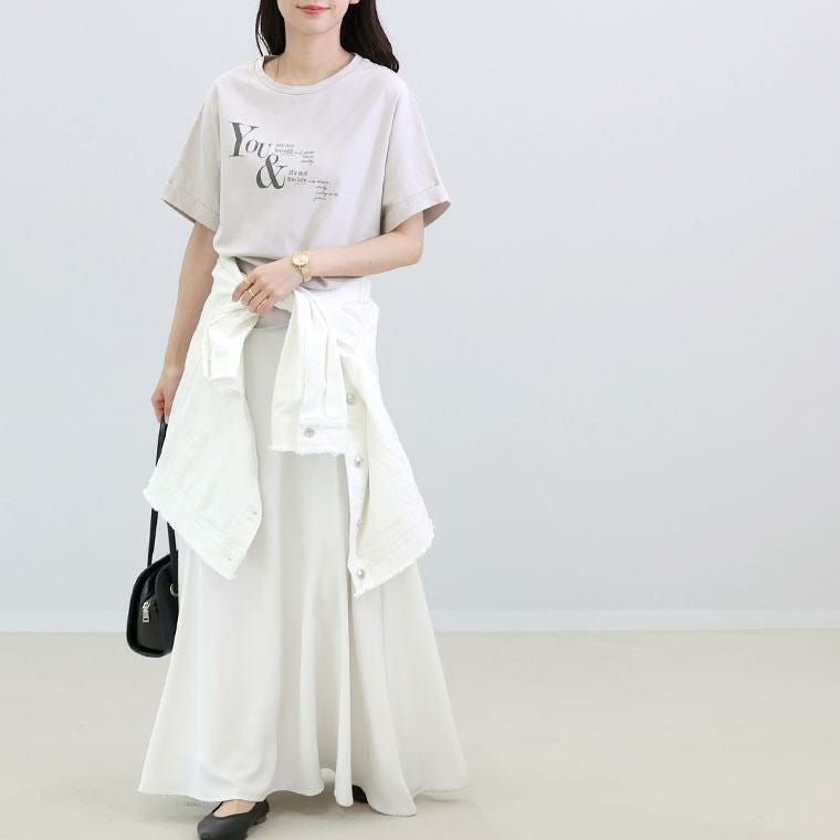 素肌にやさしいオーガニックコットンのロゴTシャツ。なめらかで柔らかな風合いでノンストレスな着心地を実現、春夏に大活躍してくれるTシャツです。フロントには洗練されたロゴプリントが大人な印象。きれいめにもカジュアルにも似合う絶妙なロゴデザインです。袖口はロールアップされて、さりげないお洒落さを演出。ゆったり身幅とドルマンスリーブで程よく体型カバーし、大人の日常に丁度いい一枚です。