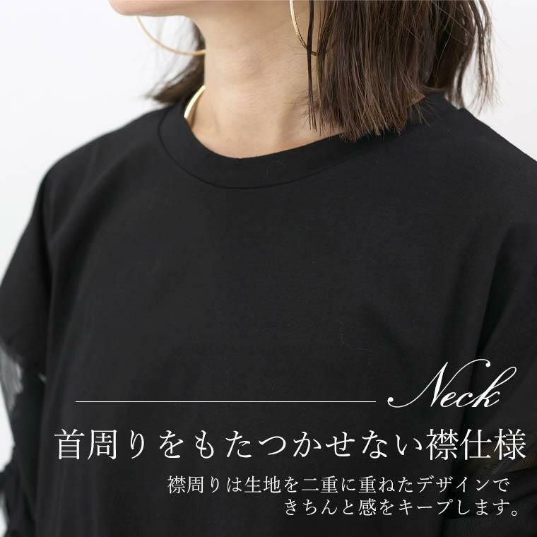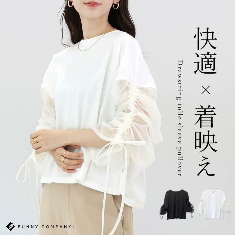 プルオーバー カットソー トップス カット チュール ドロスト 異素材 シアー 綿 コットン 長袖 7分袖 5分袖 ワイド 華奢 着痩せ 着やすい ラウンドネック デコルテ シンプル キレイ見え きれいめ キレイめ 綺麗め 上品 楽ちん イージー イージー素材 ルーズ ゆるめ PO クルーネック ゆったり くるーねっく スリット サイドスリット ゆるめ リラックス おしゃれ お洒落 体型カモフラージュ 大人め ブラック クロ 黒 黒色 白 オフホワイト ホワイト カラバリ豊富 大きめ 大きい ワンマイルウエア ワンマイルウェア レディースファッション 無地 ラクチン らくちん 楽ちん 動きやすい プラスサイズ 着痩せ 華奢見え 脚長 脚長効果 ゆったりサイズ ゆる すっきり カバー 体型カバー きちんと シンプル カジュアル ナチュラル ベーシック オフィス オフィスカジュアル テレワーク 会議 食事会 ランチ 女友達 参観日 二次会 飲み会 上品 知的 女性らしい 女らしい 着映え オンライン飲み会 着回し 大人 大人カジュアル オトナ 女性 綺麗 きれい キレイ キレイめ 高見え 上質 大きいサイズ 細見え 女性服 アースカラー フリーサイズ 楽 ノンストレス 動きやすい ゆったり 高級感 母の日 プレゼント ギフト 贈り物 S M L LL 2L XL 20代 30代 40代 50代 おしゃれ パ―ト バイト 仕事 仕事用 ユニフォーム 春夏 春 夏 秋冬 秋 冬 お洒落 オシャレ かわいい 可愛い カワイイ かっこいい カッコいい FUNNY COMPANY ファニーカンパニー ふぁにーかんぱにー ファニカン