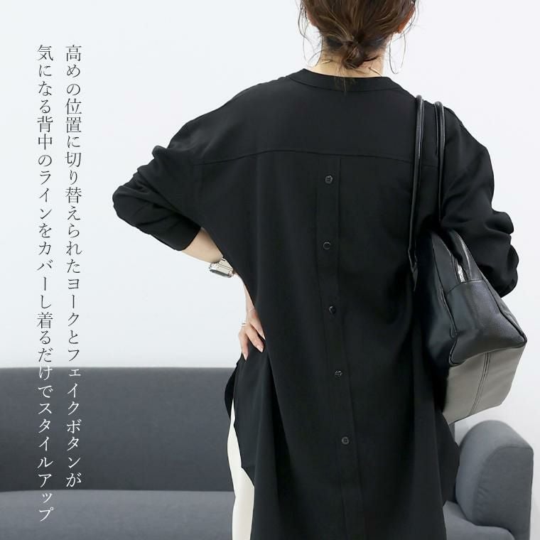 エステルスパン後ろボタンスキッパーシャツチュニック 【メール便可/ma3】